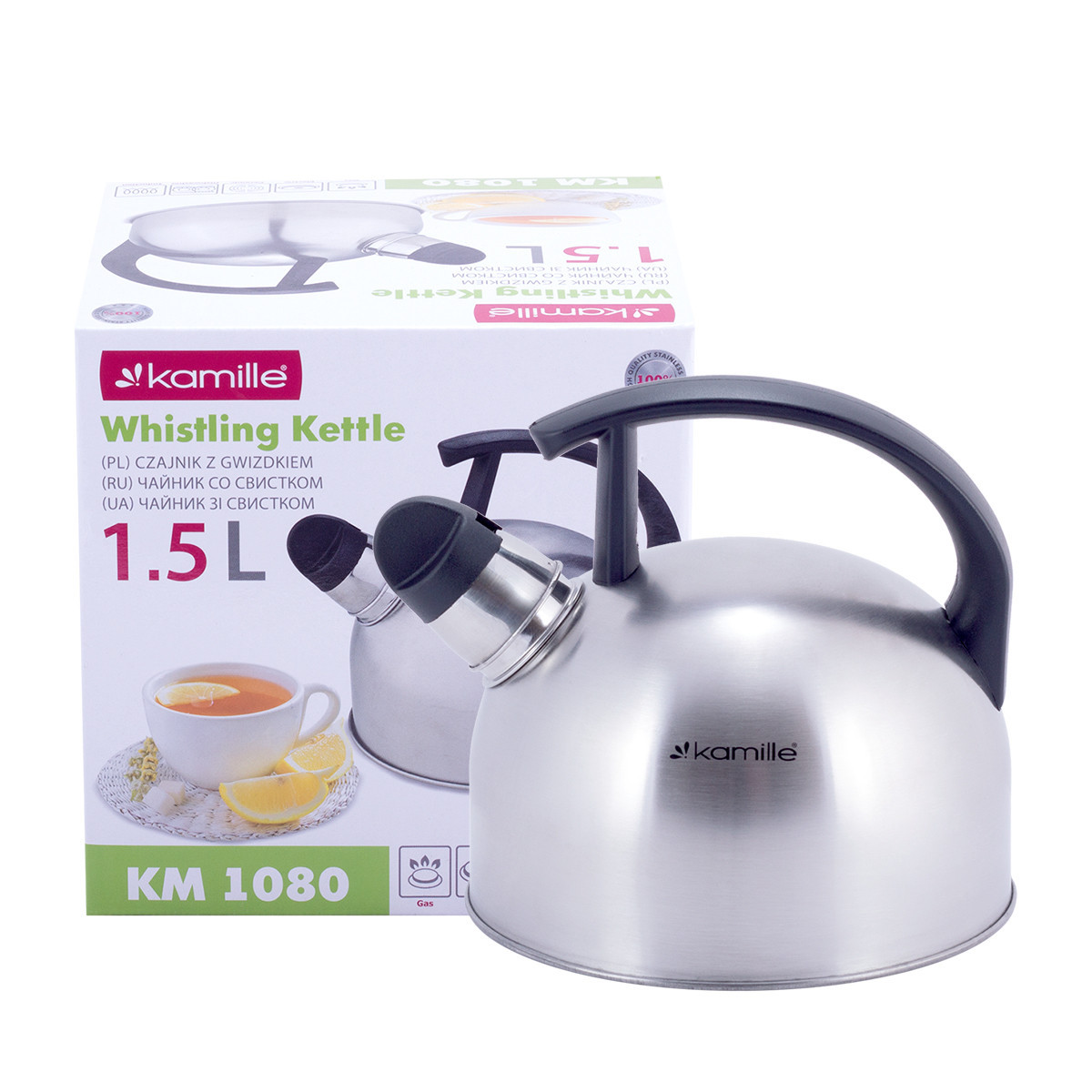 Чайник 1.5л из нержавеющей стали со свистком Kamille Km-1080