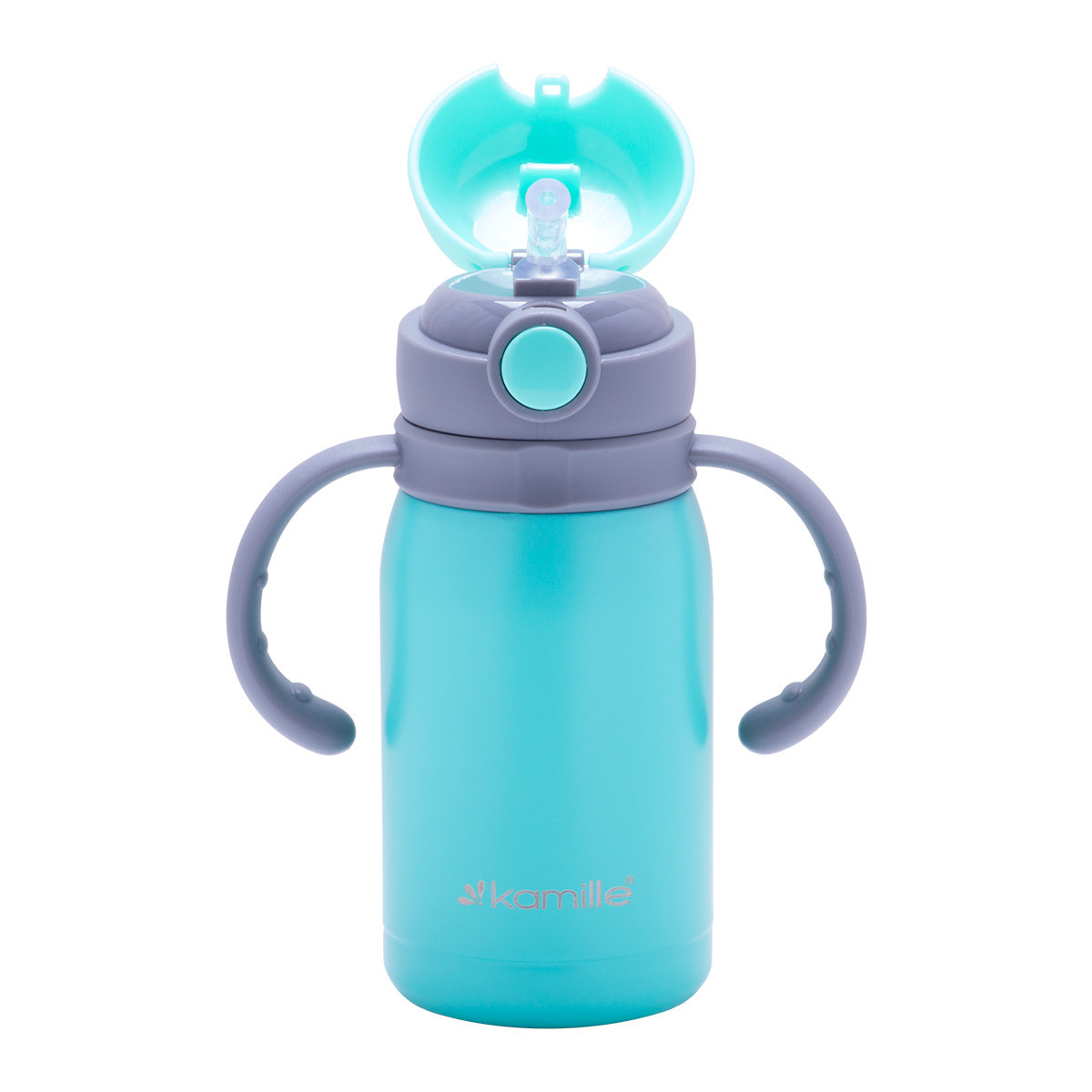 Термобутылка детская kamille 300мл из нержавеющей стали. Бренд: Kamille Описание: Детская термобутылка Kamille обладает высоким качеством, надежностью, компактными размерами и эстетичным дизайном. Такая термобутылочка станет просто незаменимой для Вашего ребенка в машине, на прогулке или в путешествии. Материал корпуса: нержавеющая сталь Материал колбы: нержавеющая сталь Материал крышки: пластик Объем: 300мл Высота: см Ручки: есть Количество ручек: 2 Материал ручек: пластик Поверхность: матовая Время сохранения температуры: 6-8 часов Варианты цветов: голубой, бирюзовый, розовый Особенности: эксклюзивный дизайн высокопрочная конструкция удобная и прочная крышка-поилка 100% герметичен