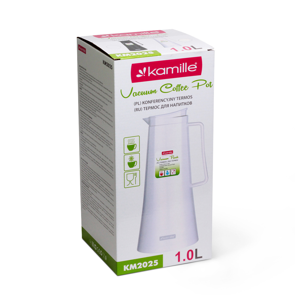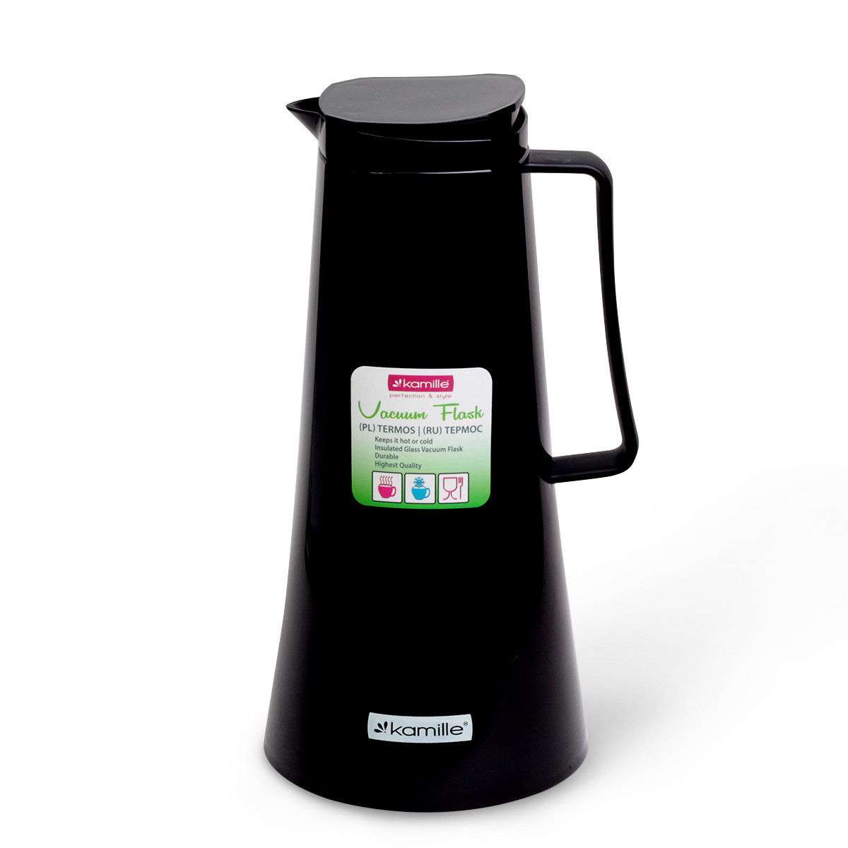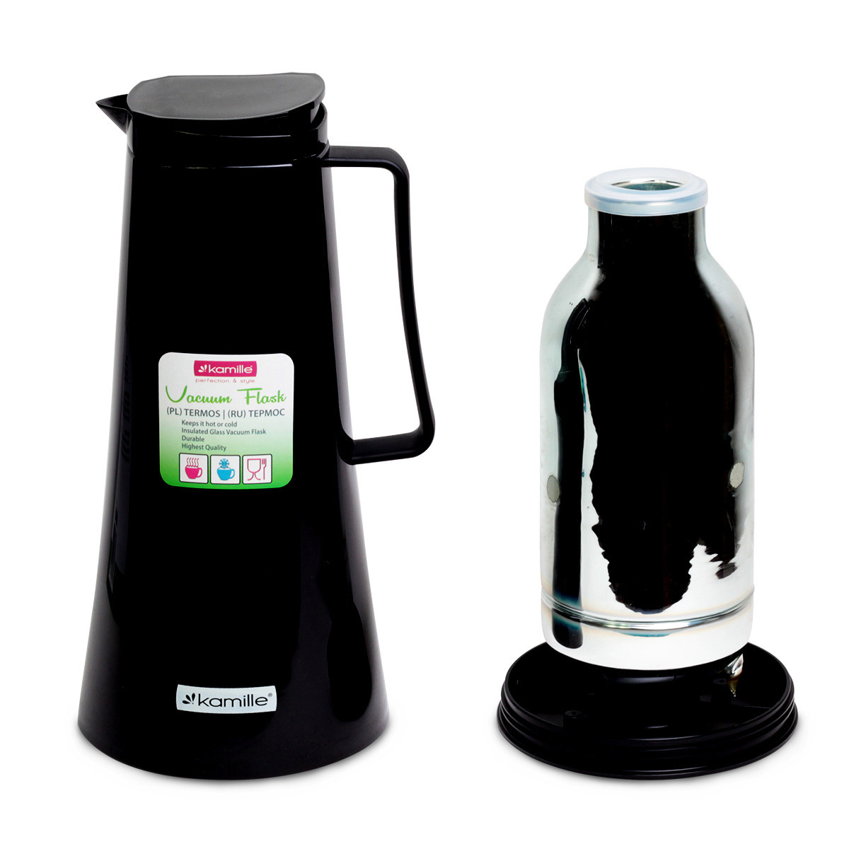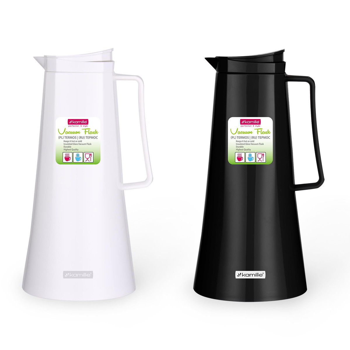 Термос 1000мл пластиковый со стеклянной колбой (белый, чёрный)