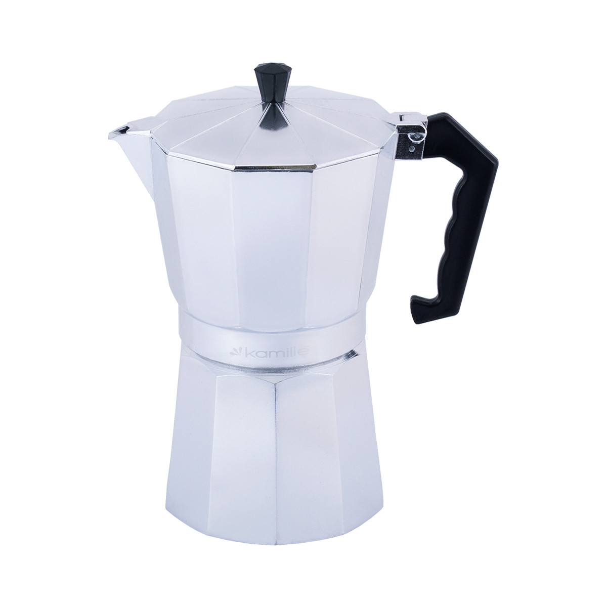 Кофеварка гейзерная kamille км-2521 (600 мл. 12 порций) из алюминия. Бренд: Kamille Описание: Гейзерная кофеварка Kamille создана для приготовления великолепного кофе по современным итальянским технологиям. Используя ее на любых кухонных плитах (за исключением индукционных), за считанные минуты Вы сможете насладиться чашкой ароматного, хорошо проваренного кофе. Материал: алюминий Материал ручки: бакелит Объем: 600 мл Количество порций: 12 Комплектация: нижняя емкость для воды емкость-фильтр для кофе фильтр силиконовое кольцо верхняя емкость Использование: Наполните нижнюю емкость водой, поместите сверху емкость-фильтр и наполните ее молотым кофе, не утрамбовывая его. Оденьте верхнюю секцию и прокрутите для закрытия. Убедитесь, что фильтр и силиконовое кольцо на месте и плотно прилегают друг к другу. Обратите внимание, что очень важно обеспечить таким образом полную герметичность. При приготовлении кофе уровень нагревания должен быть низким! Когда кофе перестанет поступать в верхнюю емкость, кофеварку необходимо убрать с нагревающей поверхности. Ароматный горячий кофе готов. Уход: После остывания кофеварки рекомендуется сразу раскрутить и вымыть ее при помощи небольшого количества моющего средства. Производить сборку только в сухом виде!