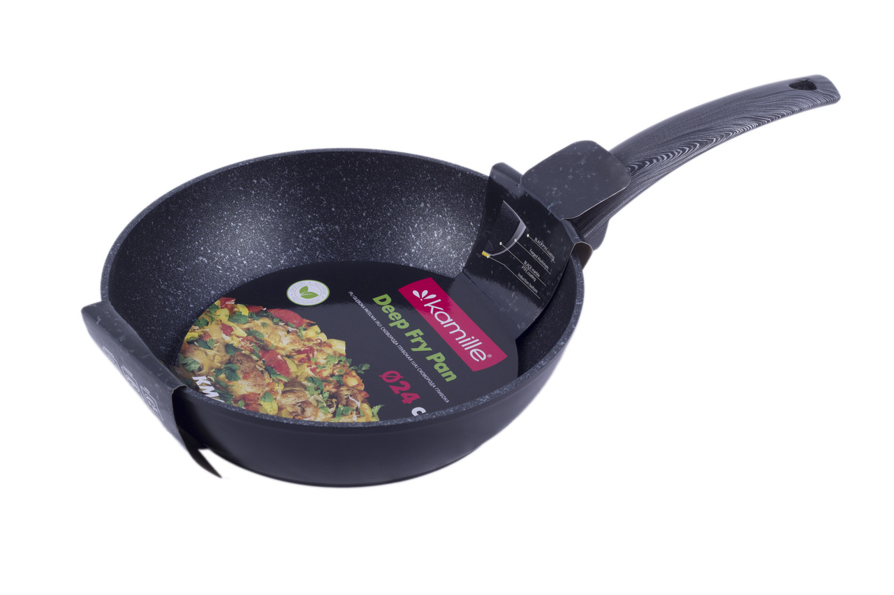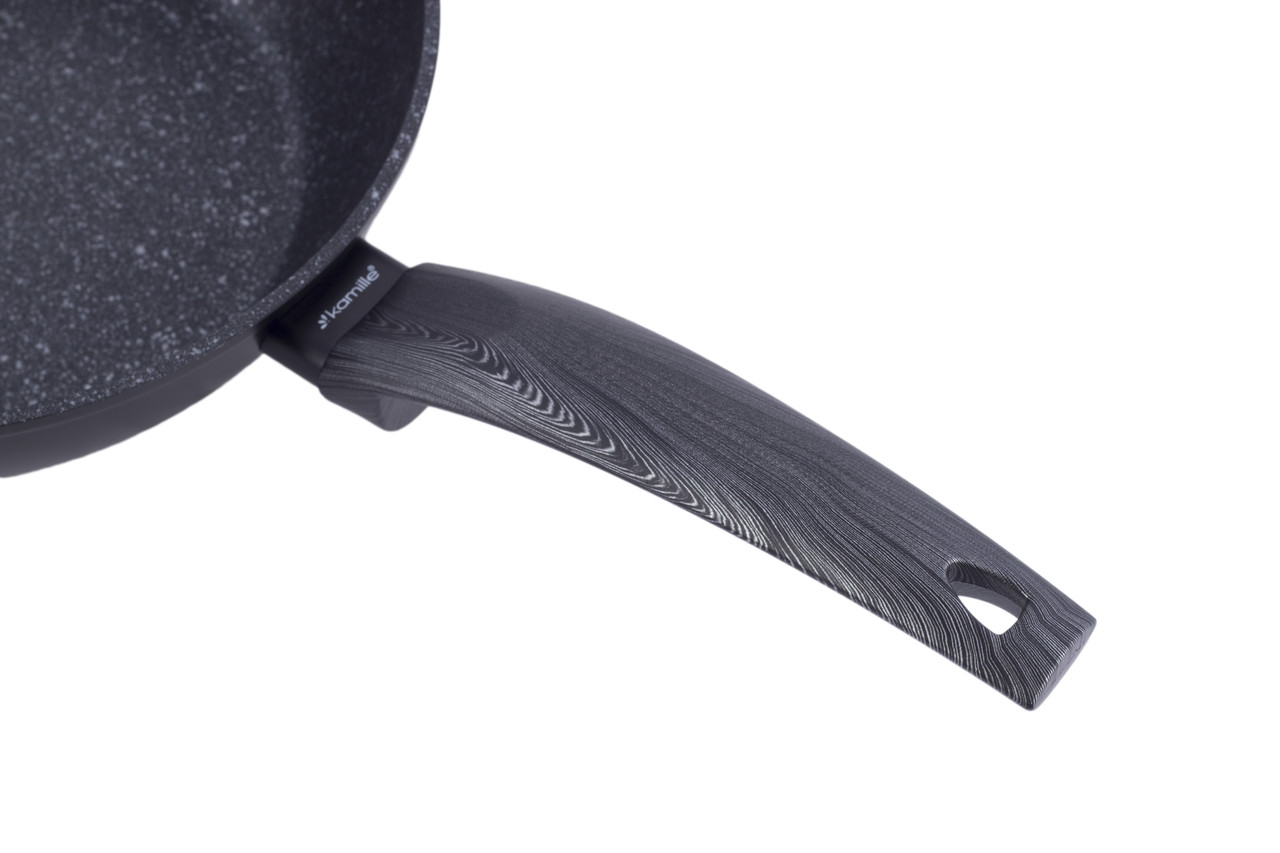 Сотейник 24 см. Kamille Km-4134 с покрытием чёрный мрамор из алюминия