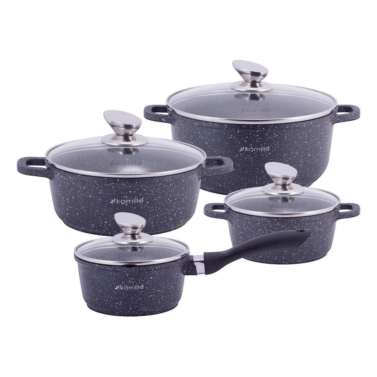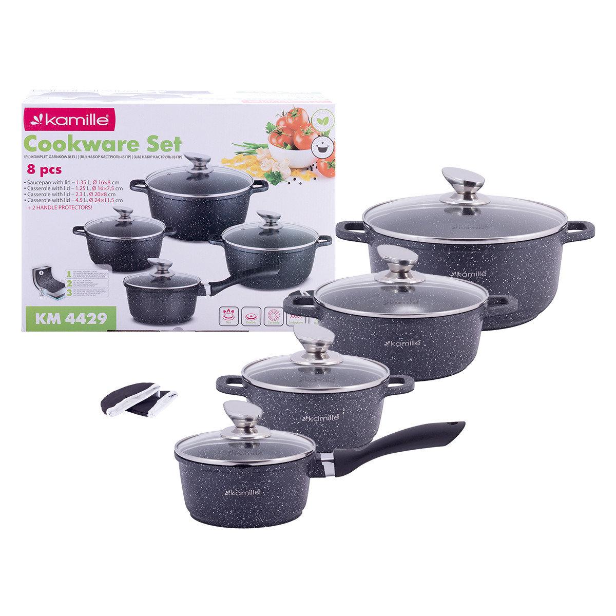 Набор посуды Kamille 9 предметов с прихватками (ковш 16см, кастрюли 16см,