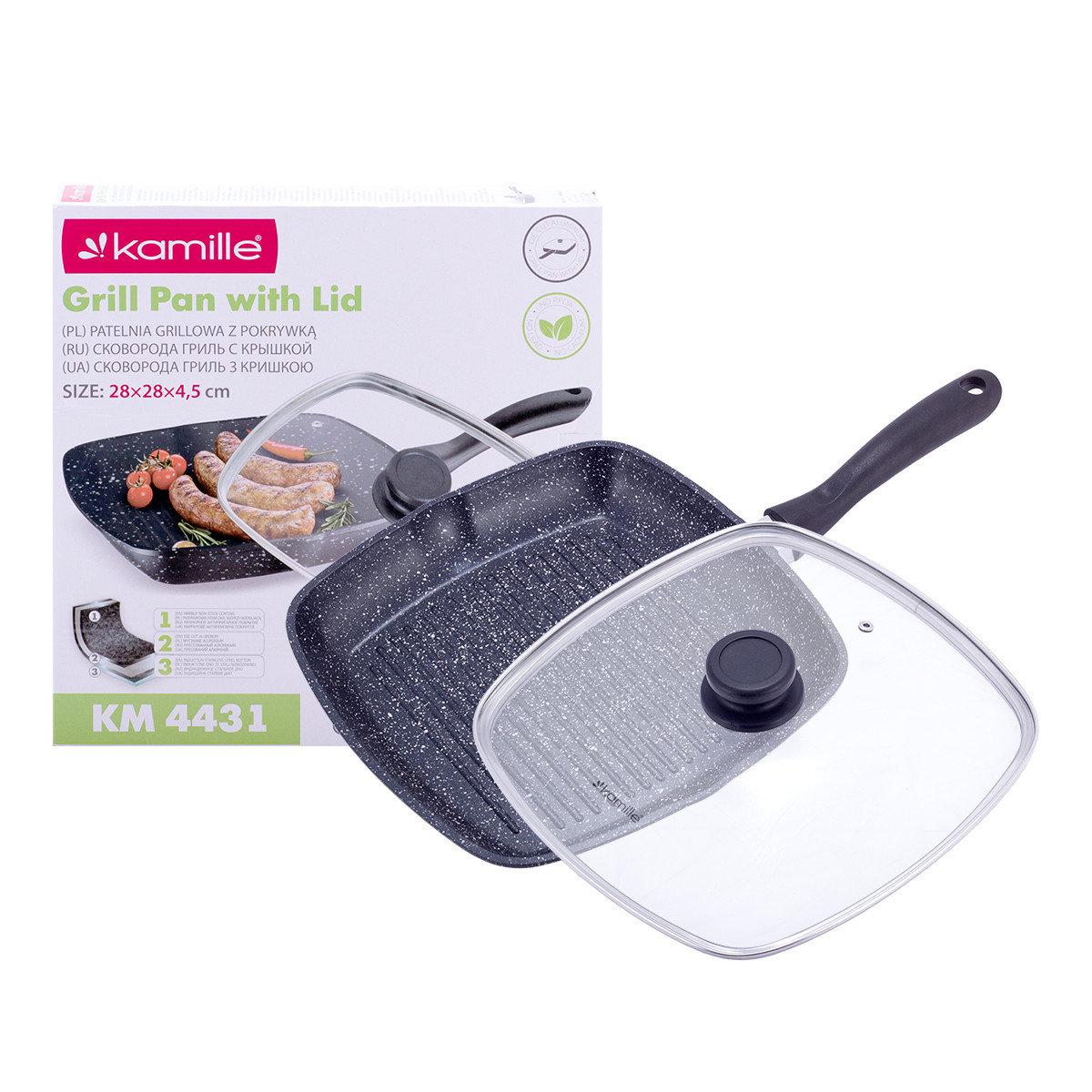 Сковорода-гриль Kamille 28см с крышкой и антипригарным покрытием черный мр