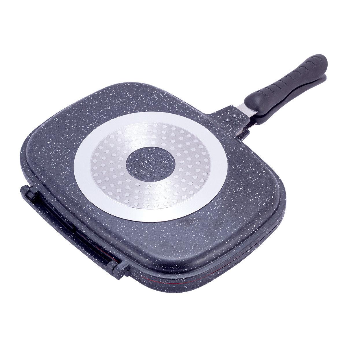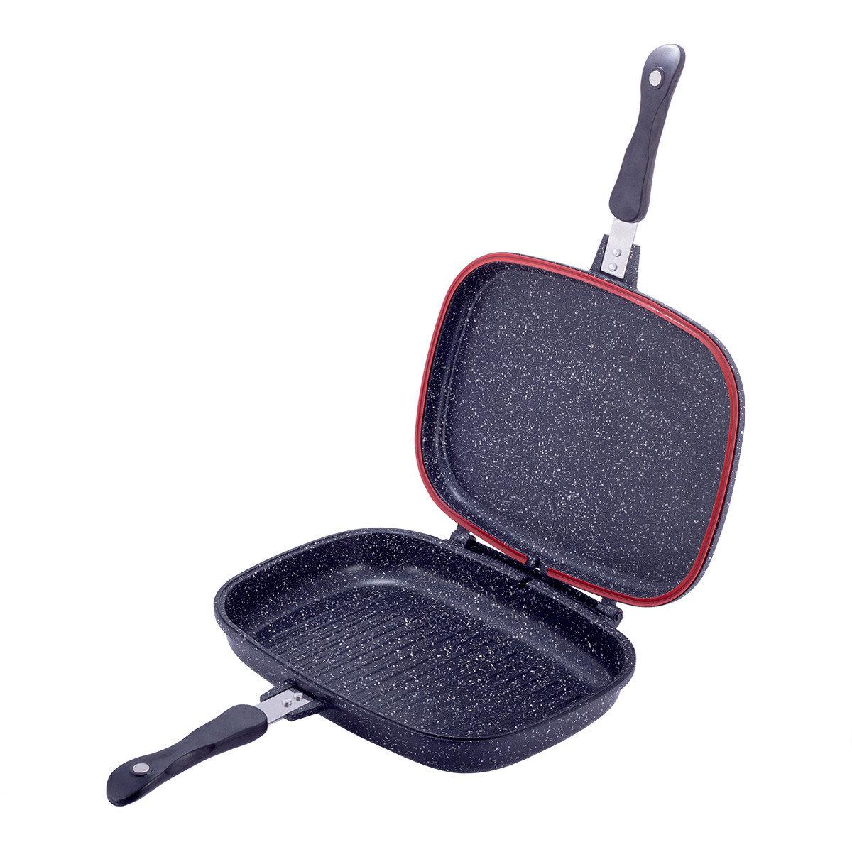 Сковорода-гриль литого алюминия Kamille 32*24*7см двухсторонняя с антиприг