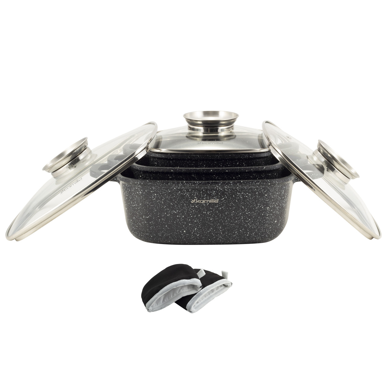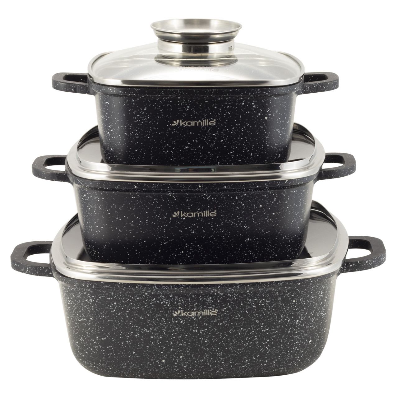 Набор посуды 7 предметов с прихватками Kamille Km-4435 (кастрюли квадратны