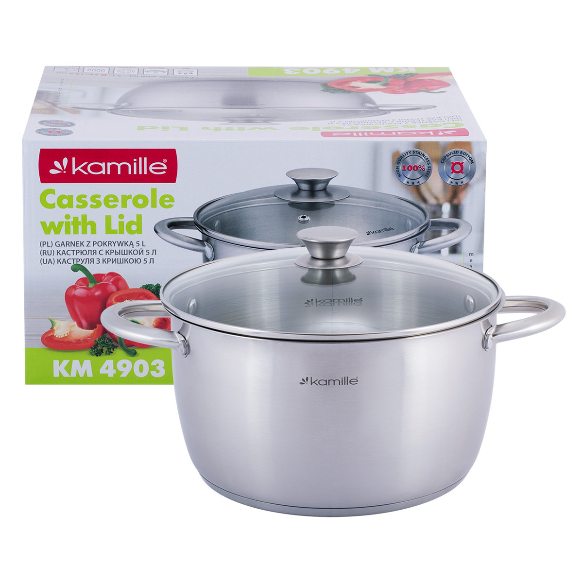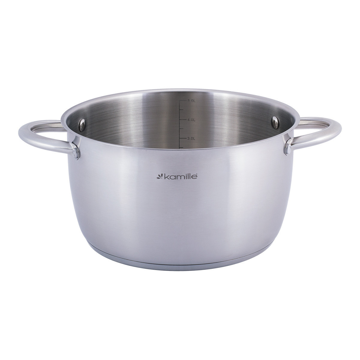 Кастрюля с крышкой Kamille 5л из нержавеющей стали и полыми ручками для ин