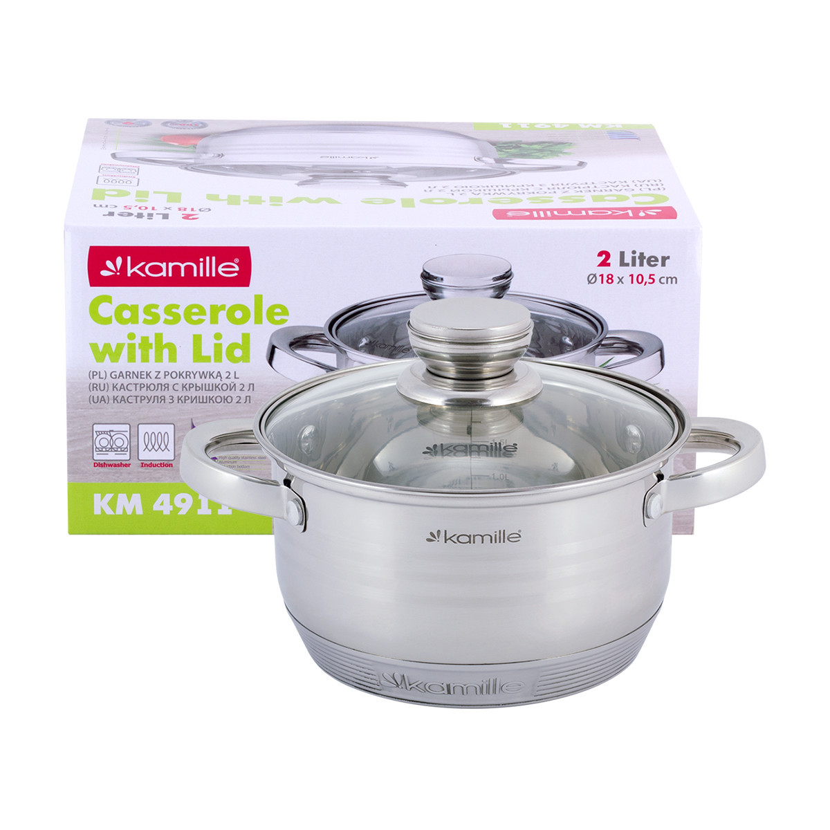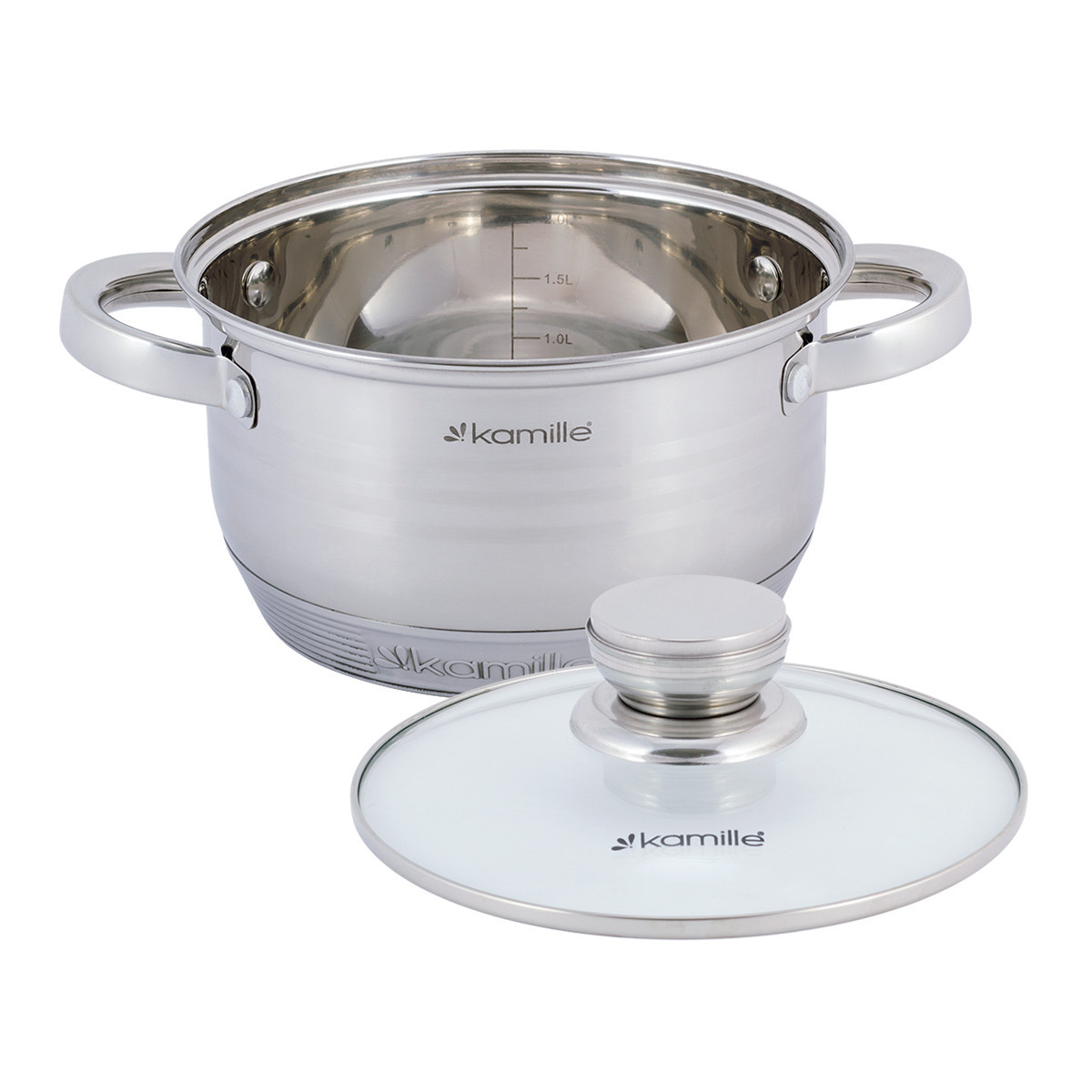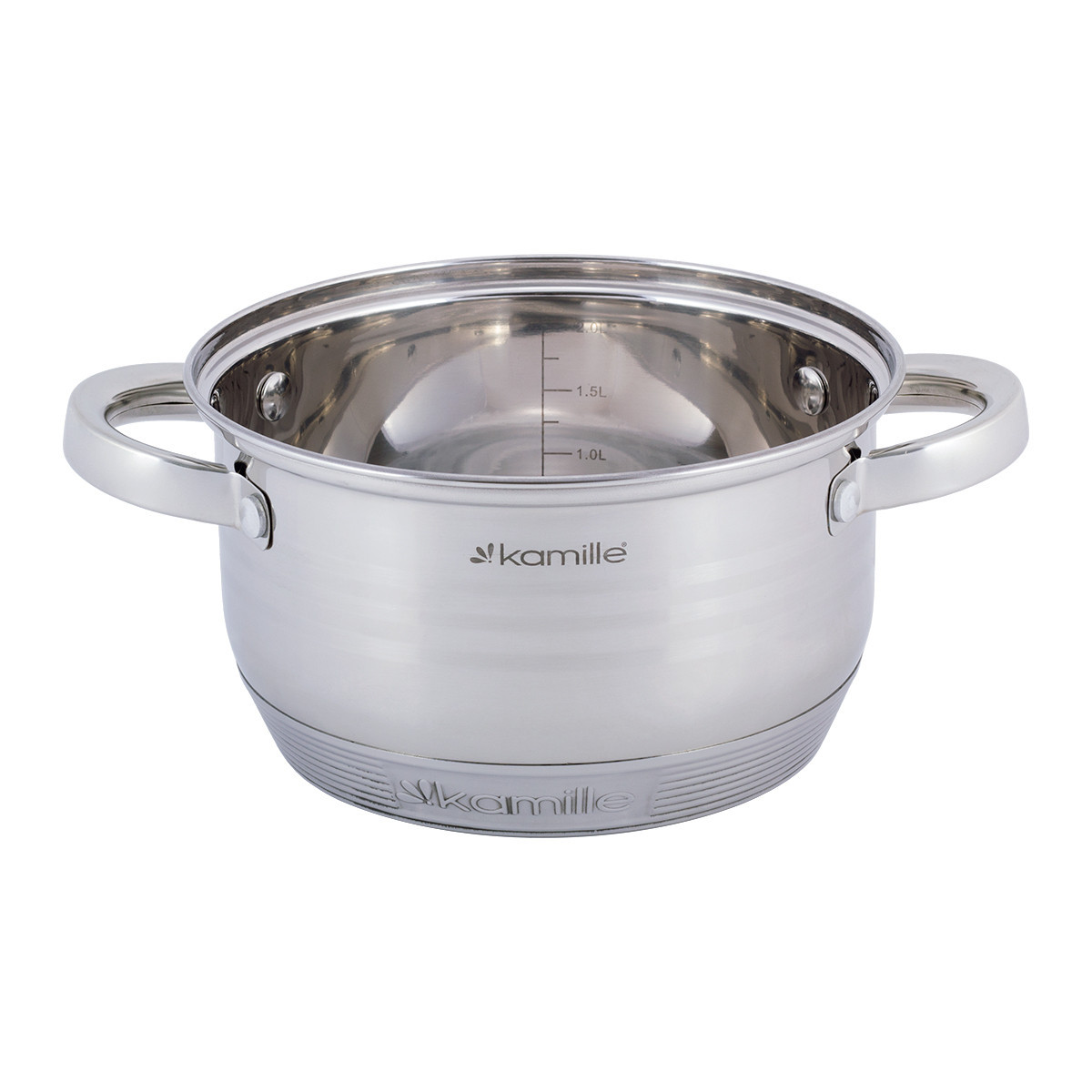 Кастрюля с крышкой Kamille 2.0л из нержавеющей стали и полыми ручками для