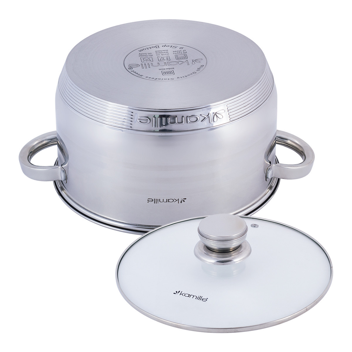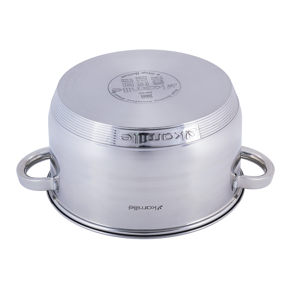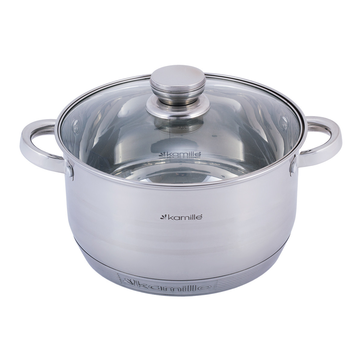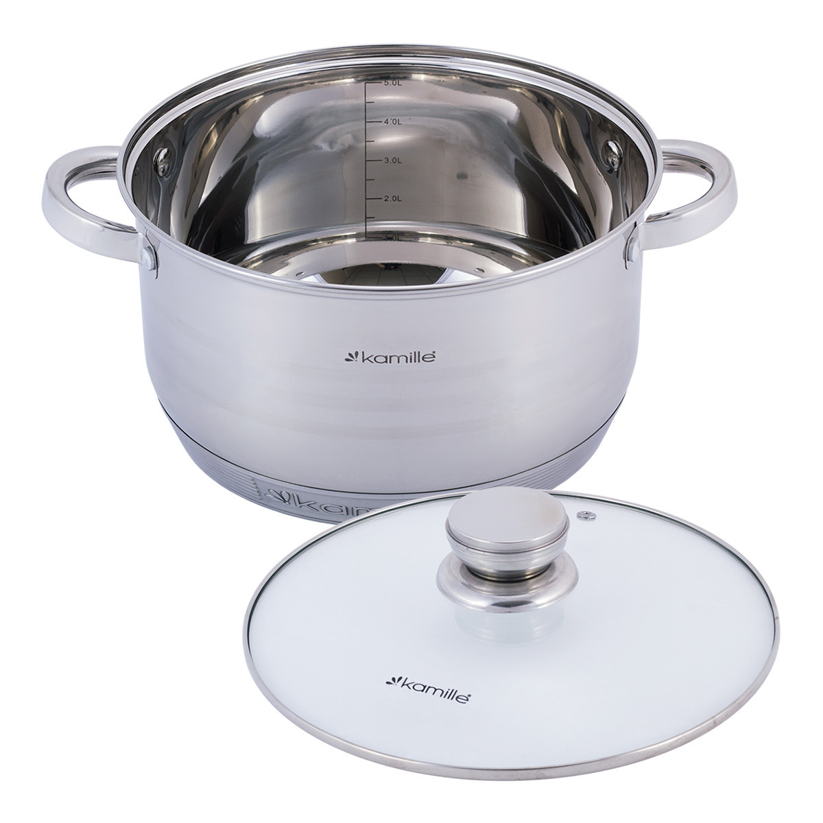 Кастрюля с крышкой Kamille 5л из нержавеющей стали и полыми ручками для ин