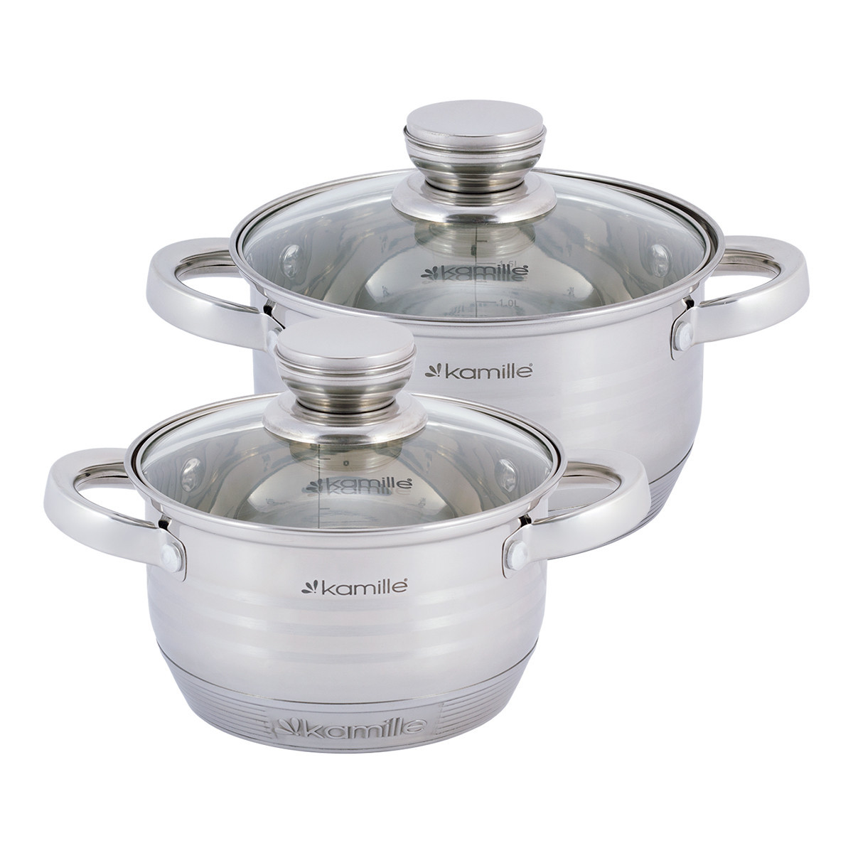Набор кастрюль Kamille из нержавеющей стали 4 предмета для индукции и газа