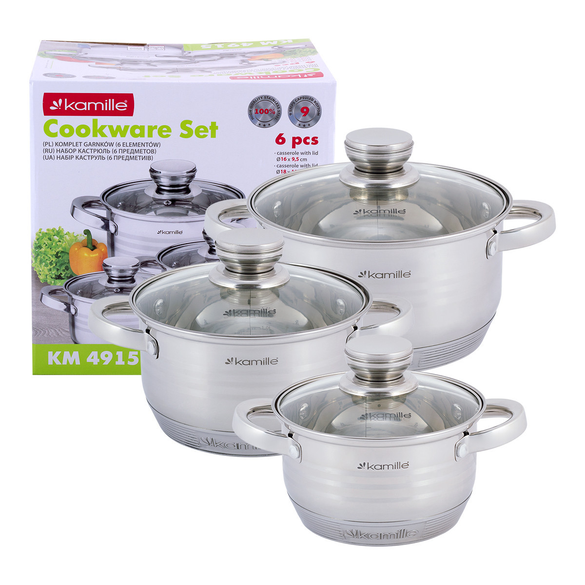 Набор кастрюль Kamille из нержавеющей стали 6 предмета для индукции и газа