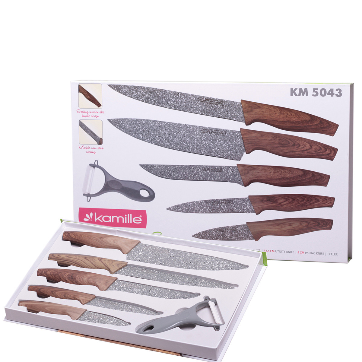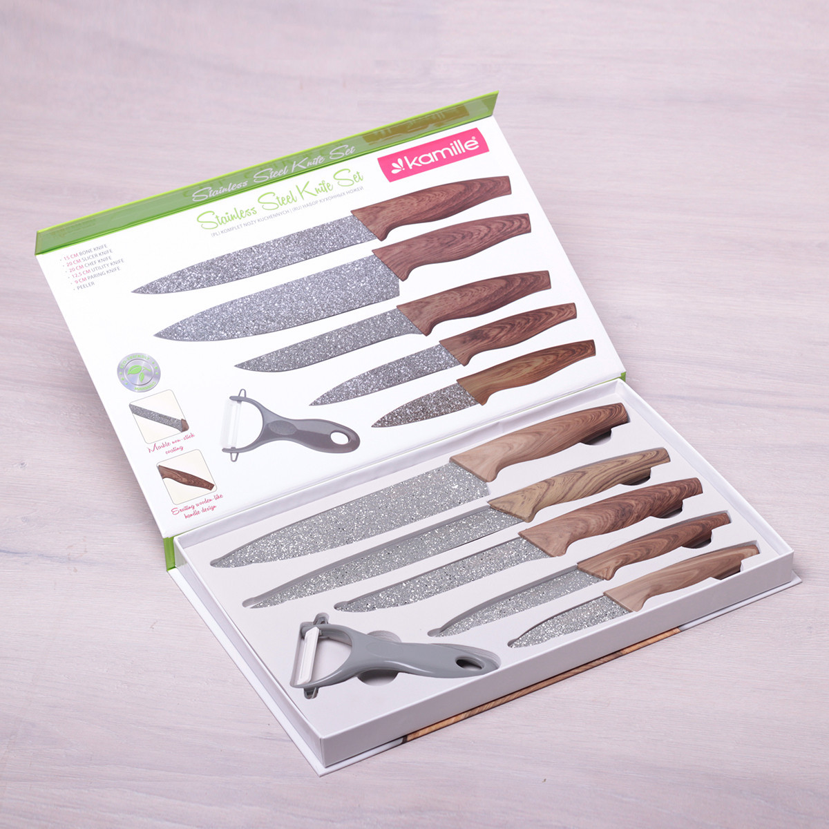 Набор кухонных ножей Kamille 6 предметов в подарочной упаковке (5 ножей+ов