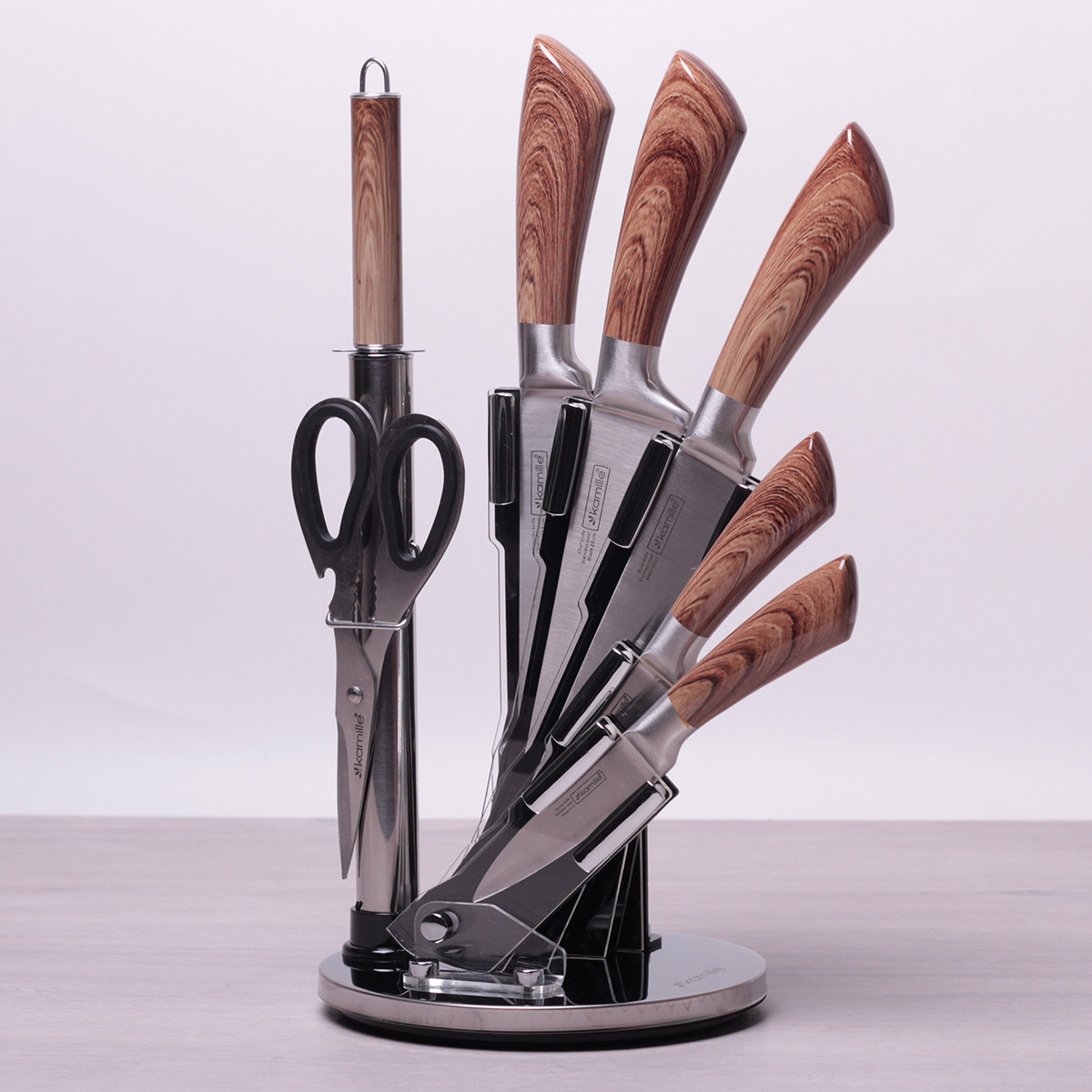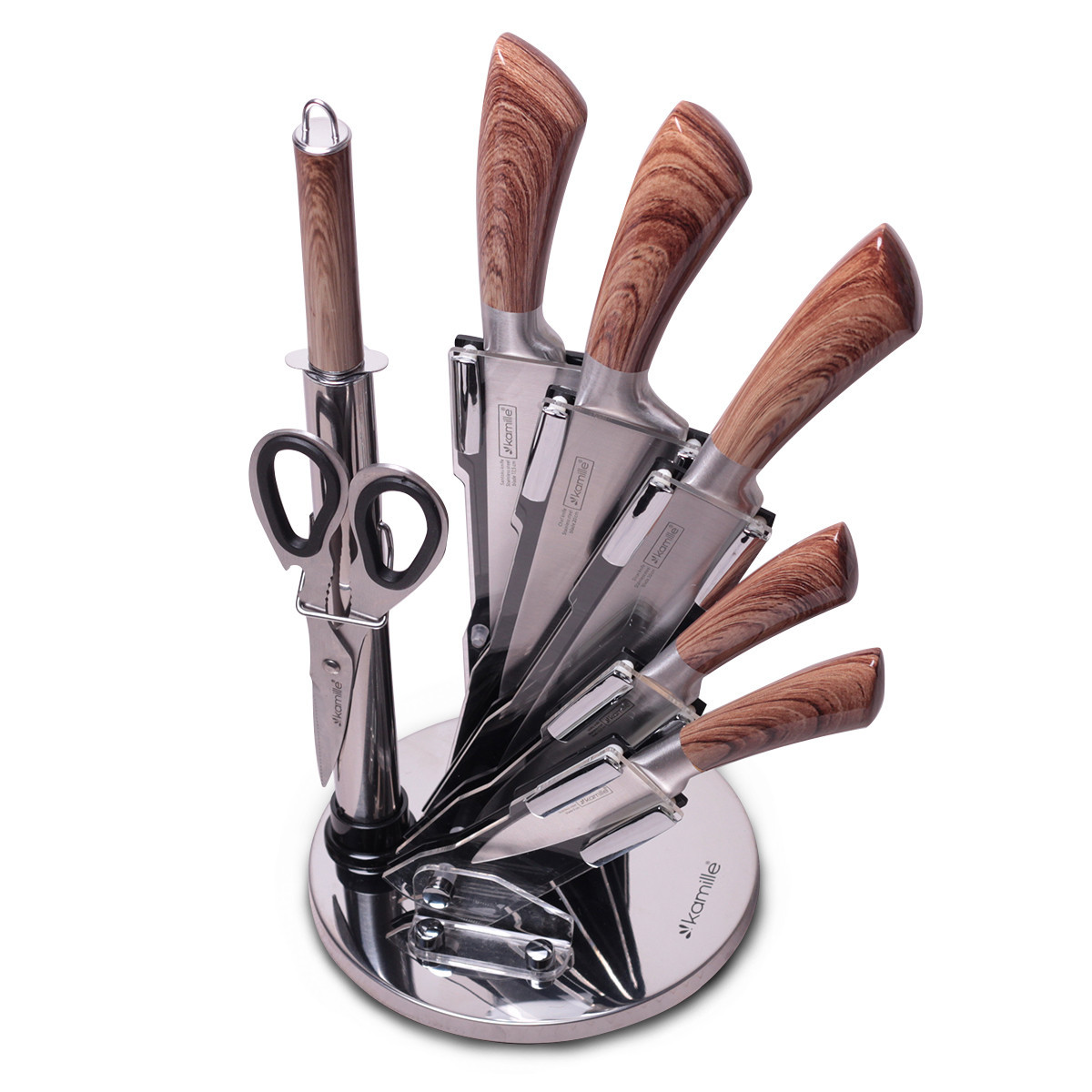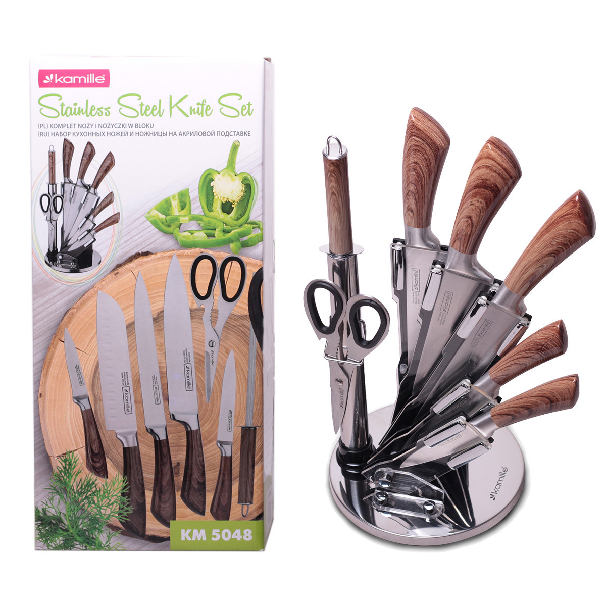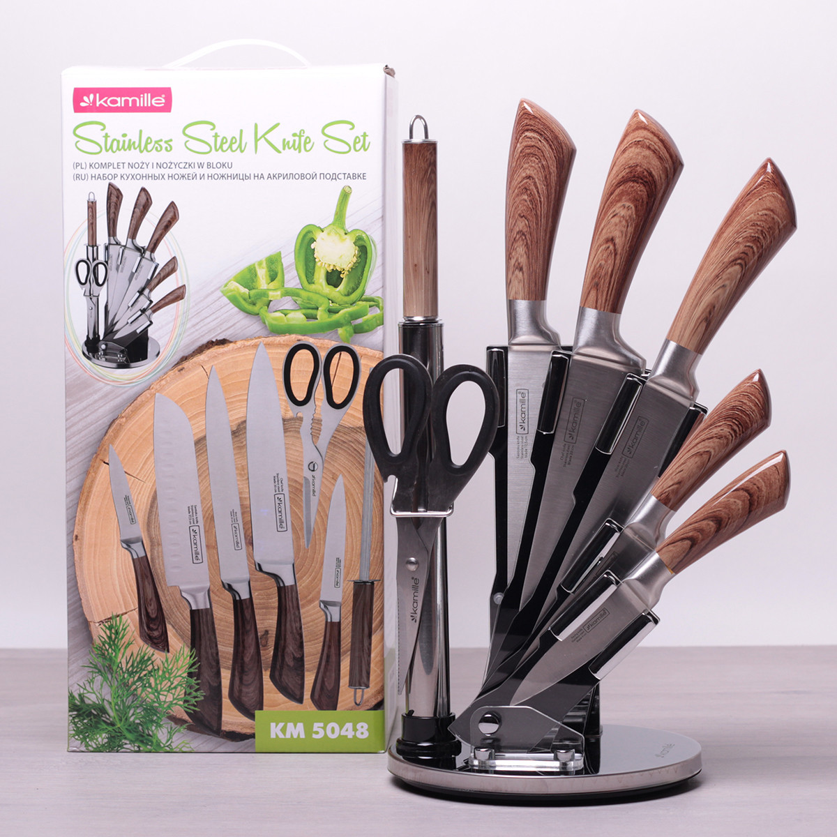 Набор кухонных ножей, ножницы и точилка Kamille 8 предметов на акриловой