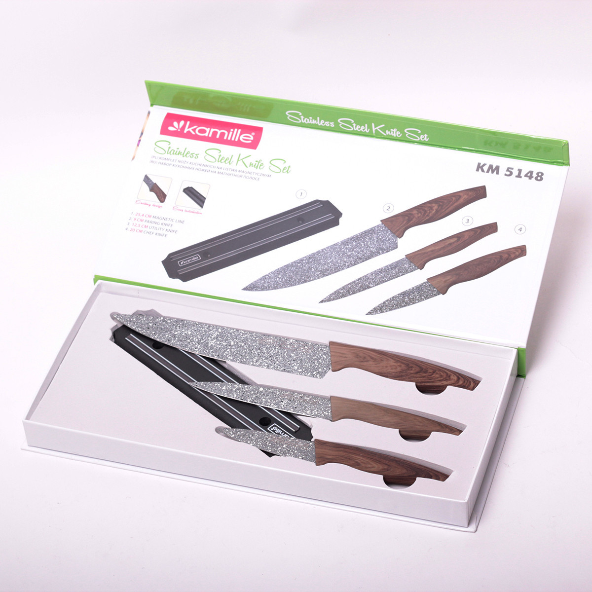 Набор кухонных ножей на магнитной полоске 4 предмета (3 ножа+держатель) Km