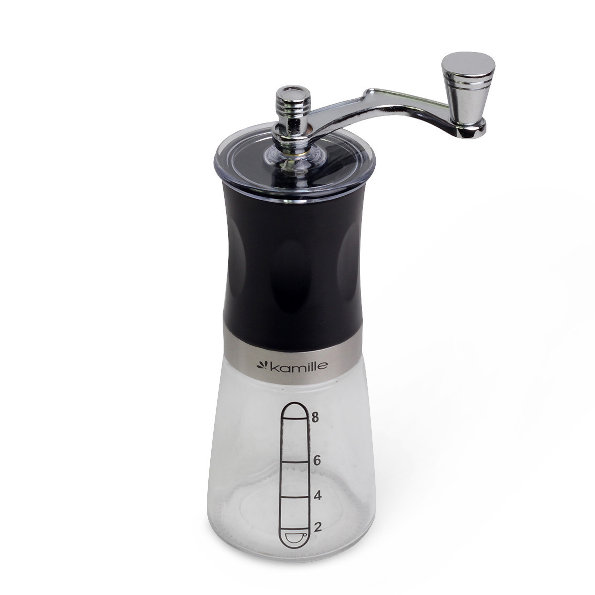 Кофемолка ручная kamille 6.5*18.5см механическая. Бренд: Kamille Описание: С помощью функциональной кофемолки Вы с легкостью сможете перемолоть кофе. Такая кофемолка станет идеальным подарком для любитей ароматного напитка, а ее стильный дизайн подойдет к интерьеру любой кухни. Тип кофемолки: механическая Материал: стекло, нержавеющая сталь, пластик Материал механизма: керамика Количество порций: 8 Размеры, см: Ø6. 5*18. 5см Цвет: коричневый, черный Особенности: современный стильный дизайн исключительно безопасные материалы не впитывает запахи съемная ручка оснащена керамическим жерновом, устойчивым к коррозии наличие мерной шкалы высокое качество помола удобная в использовании, благодаря своей эргономичной форме легко поддается чистке