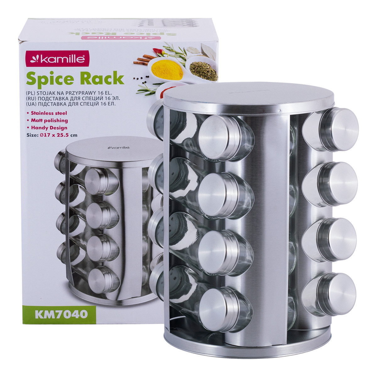Набор ёмкостей для специй Kamille км-7040 (16 шт.) на круглой подставке