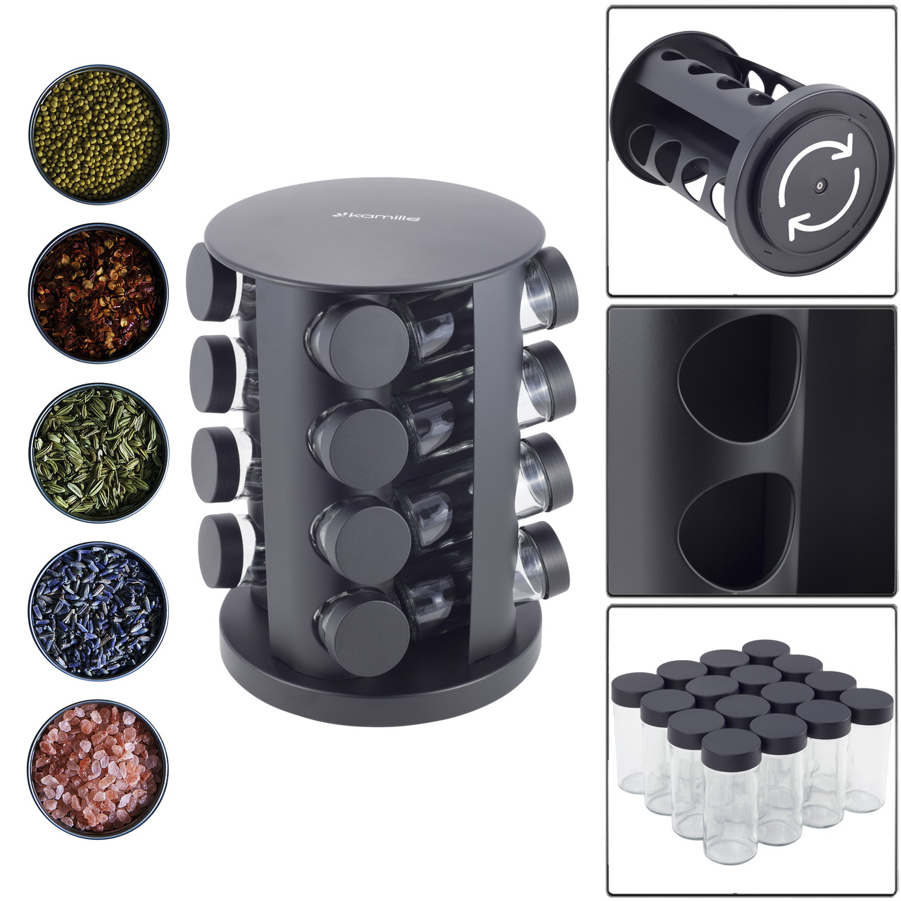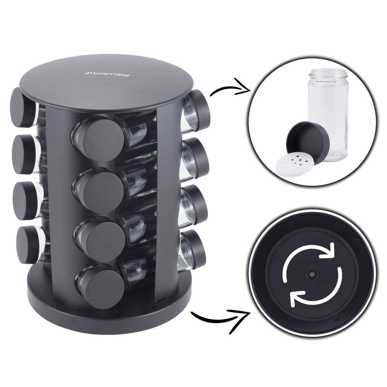 Набор ёмкостей для специй Kamille км-7046 (16 шт.) на круглой черной подст