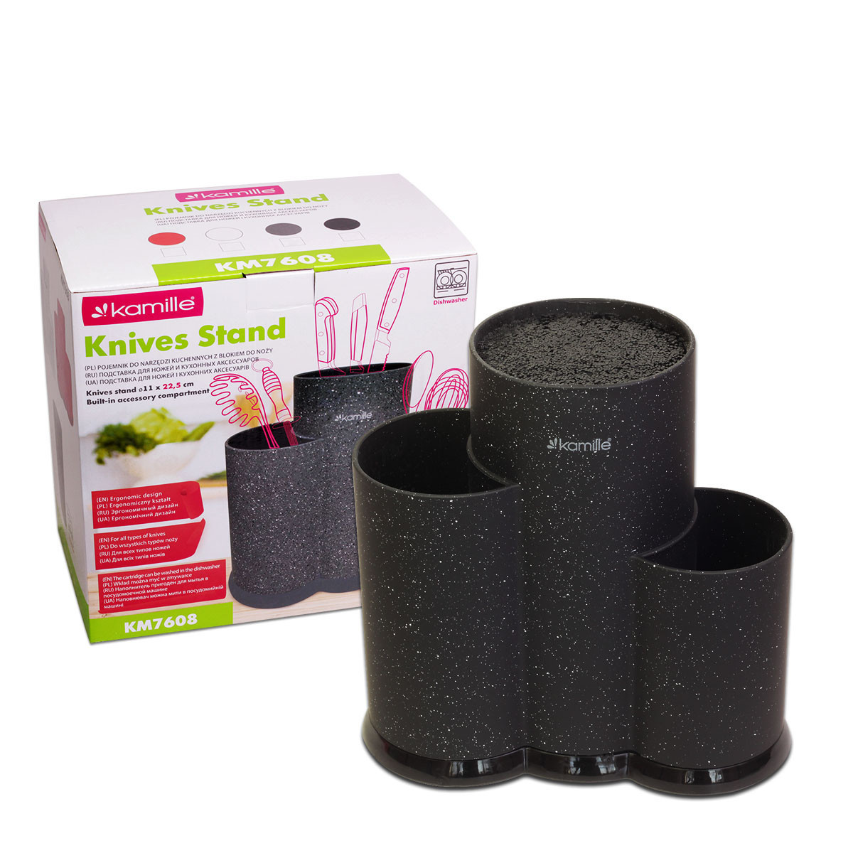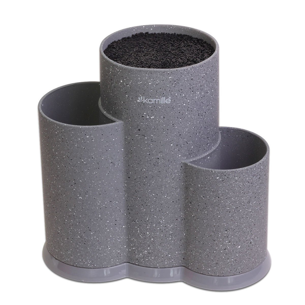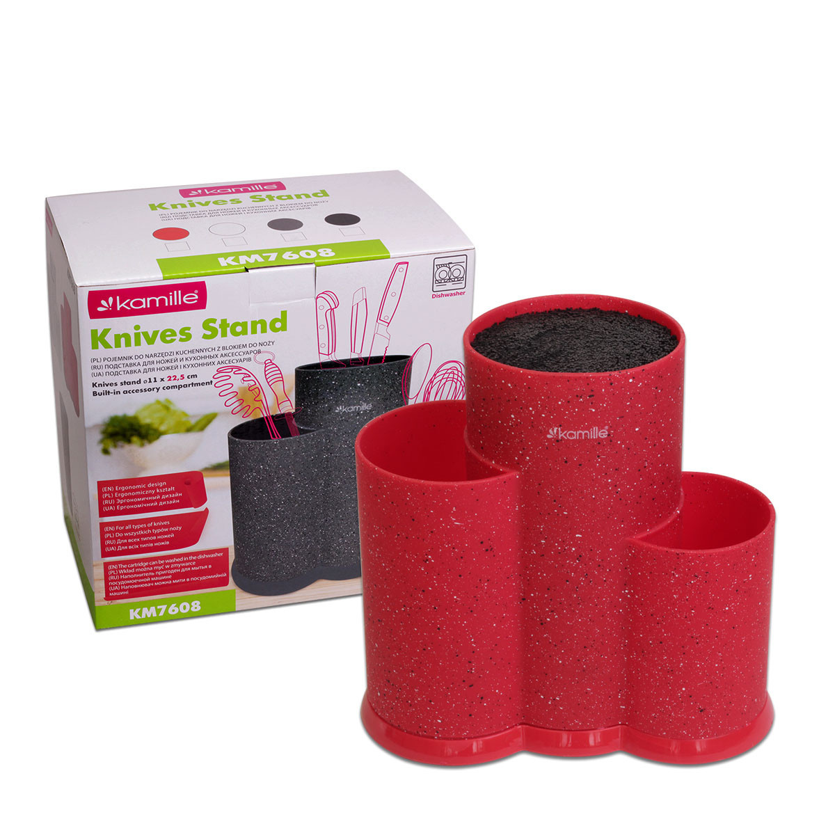 Подставка для ножей kamille km-7608 (тройная 22 см.) белый мрамор, красный. Бренд: Kamille Описание: Подставка для ножей позволяет максимально бережно сохранять ножи. Внутри подставки расположены полипропиленовые разделители, благодаря чему вставить в нее нож можно любым образом. Подставка подходит как для обычных металлических, так и для керамических ножей. Подставка для ножей и кухонных принадлежностей тройная 22 см. Kamille KM-7608 Материал: пластик Размеры, см: 22 Цвет: черный мрамор, серый мрамор, красный мрамор, белый мрамор. Особенности: современный дизайн корпус с внешним покрытием «soft-touch» легко поддается очистке