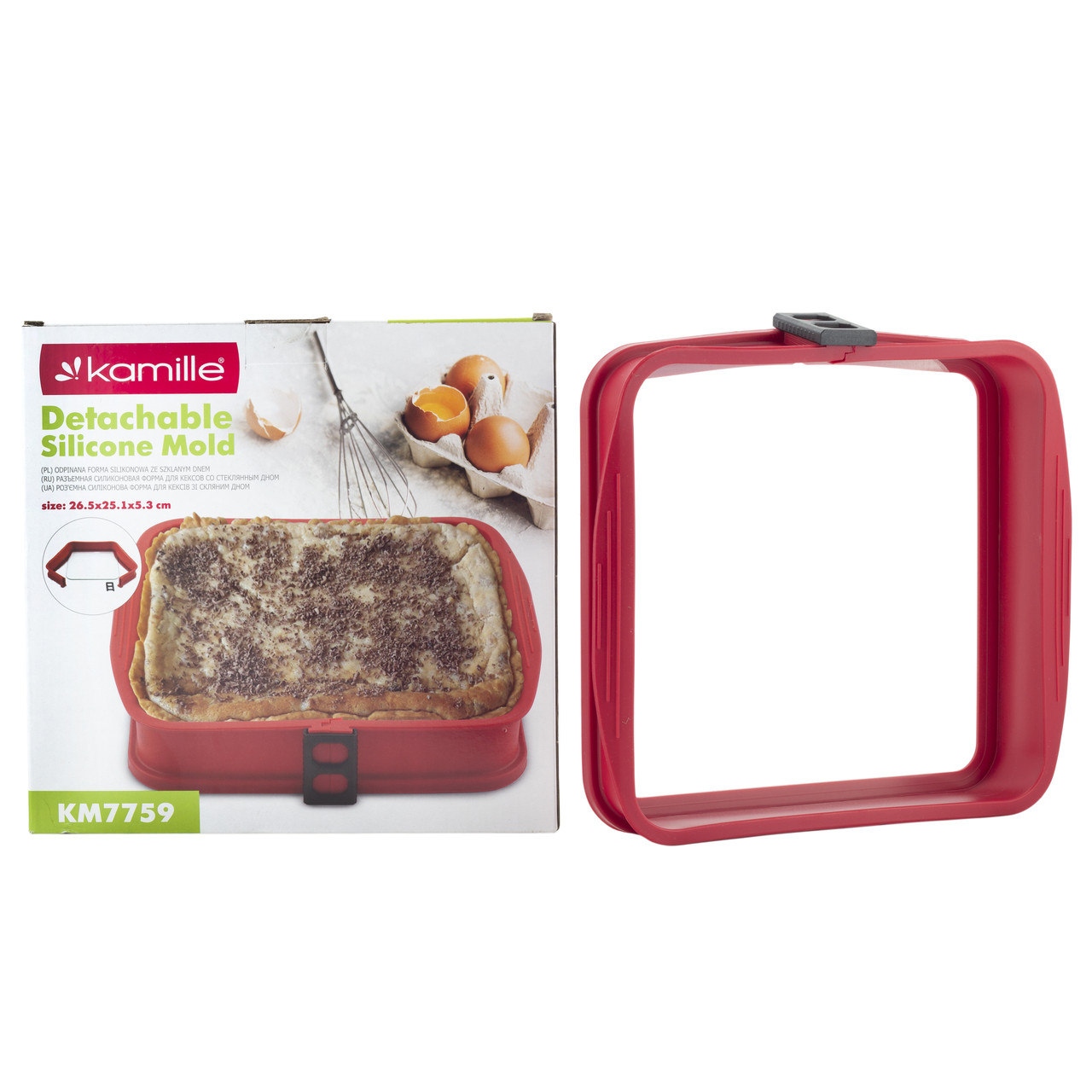 Форма силиконовая квадратная со стеклянным дном kamille km-7759. Бренд: Kamille Описание: Силиконовые формы - универсальны и долговечны. Они выдерживают температуры от -40 до +230°C и поэтому их можно использовать как при заморозке, так и для выпекания. К силиконовым формам не прилипает тесто, у них отличные антипригарные свойства, пластичность позволяет легко извлечь готовый продукт. Силиконовые формы можно использовать для выпечки, приготовления мороженного и льда, конфет и леденцов. Каждая хозяйка будет рада присутствию силиконовой посуды на кухне. Форма для выпечки Kamille KM-7759 силиконовая квадратная, разъемная, со стеклянным дном Силиконовая форма со стеклянным дном разъемная. Материал: силикон, жаропрочное стекло. Размер: 26,5х25,1х5,3 см. Тип духовки: газовая, электрическая. Температура использования: от -40°С до +230°С. Цвет: красный. Форма: квадратная Особенности: практичность и долговечность в использовании подходит для всех видов духовок подходит для хранения в холодильнике легко поддается очистке