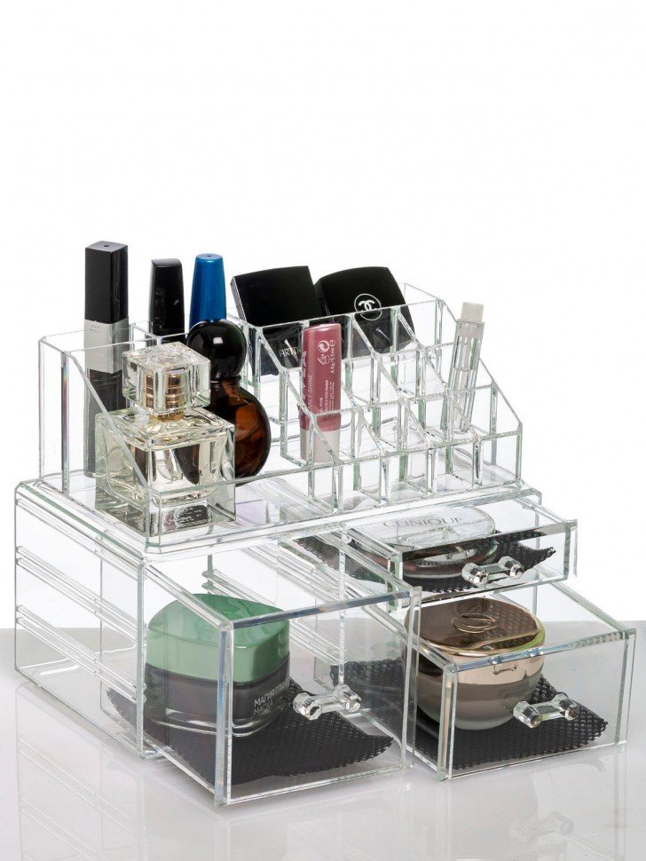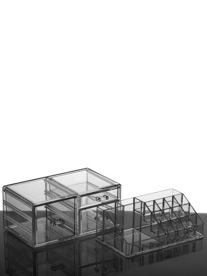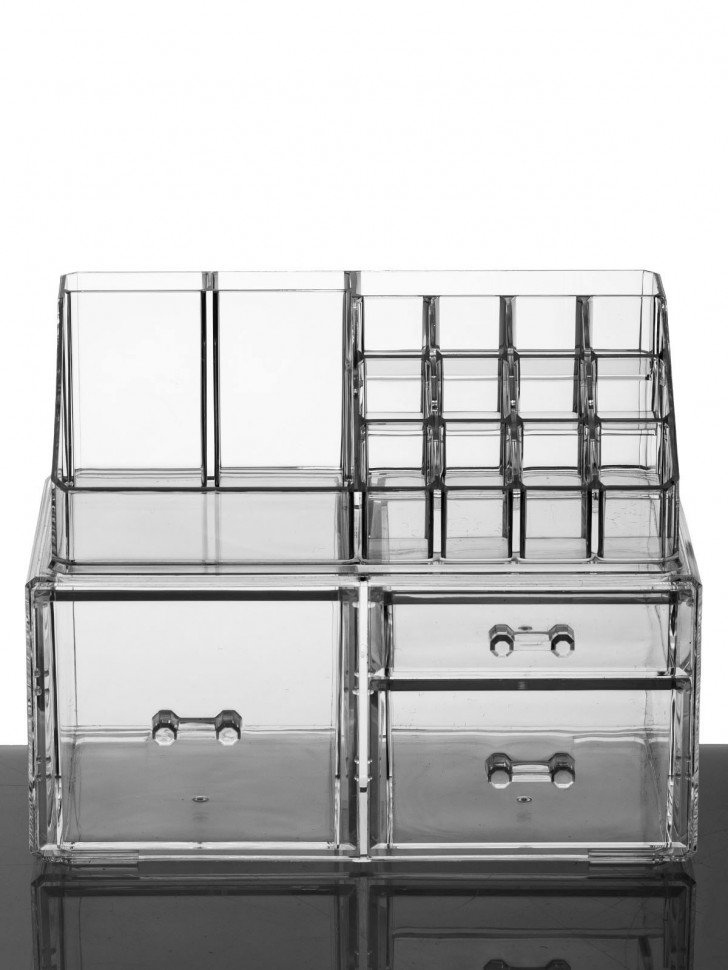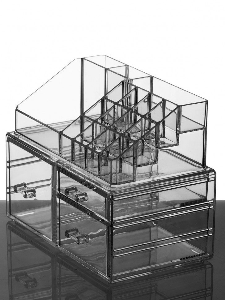 Органайзер для косметики s-331 прозрачный. Двухъярусный акриловый органайзер для косметики с тремя выдвижными ящиками разного размера Длина 24 Ширина 15 Высота 18. 3 Цвет прозрачный Материал акрил
