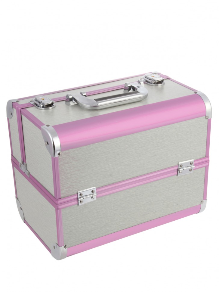 Металлический кейс для визажистов S-7364wp бело-розовый