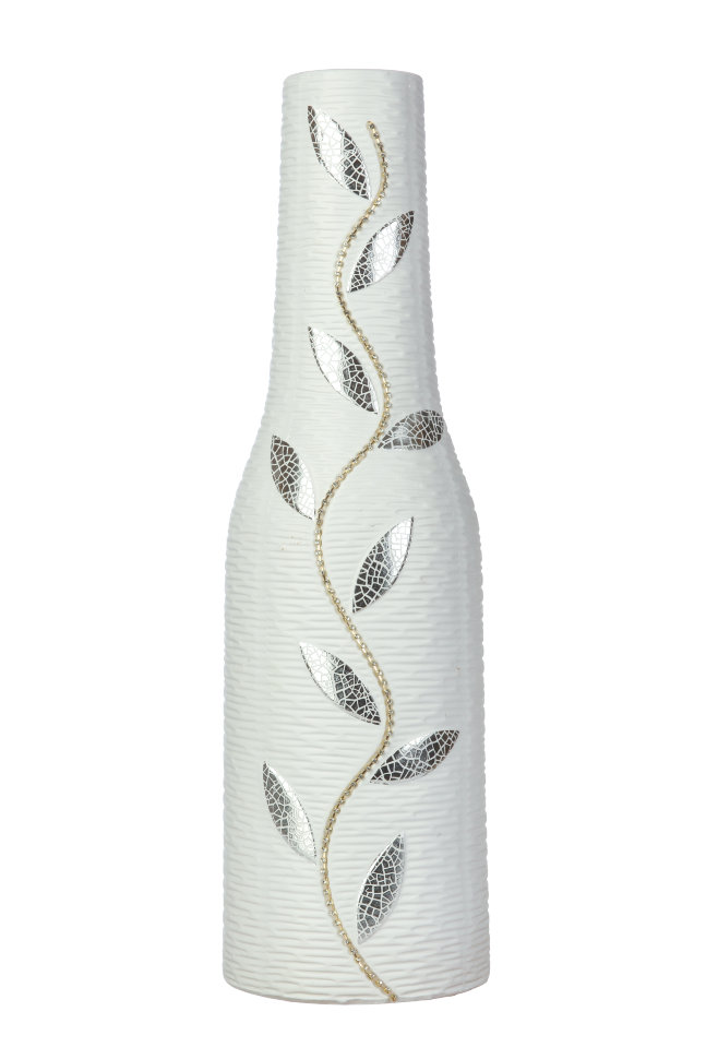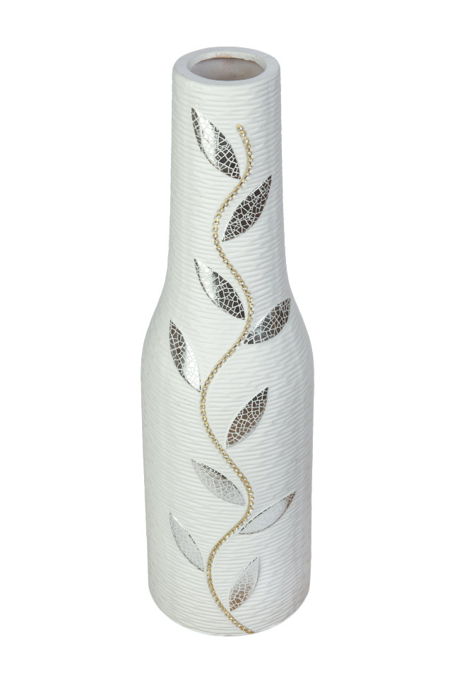 Ваза керамическая напольная, украшенная серебристой мозаикой и крупными стразами, удачно впишется в любой интерьер.