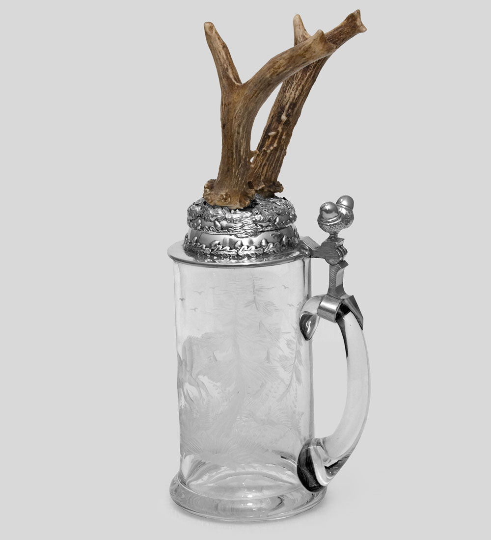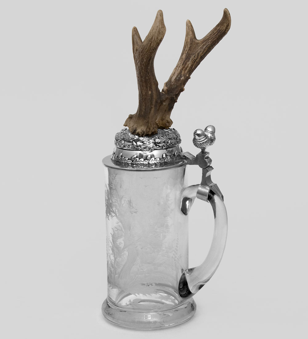 W-519-3r пивная кружка с рожками косули с гравировкой эротика