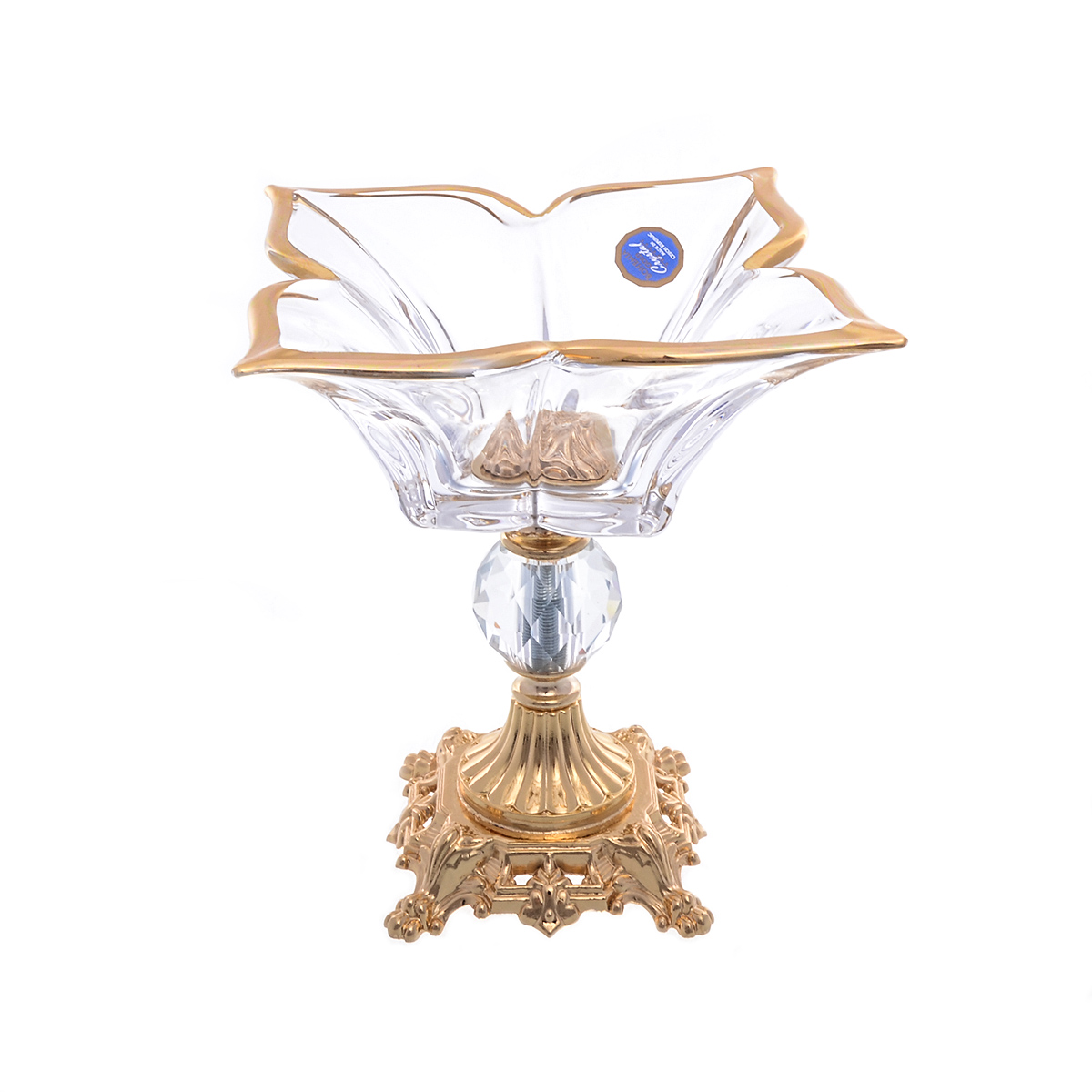 Конфетница на ножке Bohemia Gold Picadelli 21см Металлическая шкатулка для украшений S-69 фиолетовый