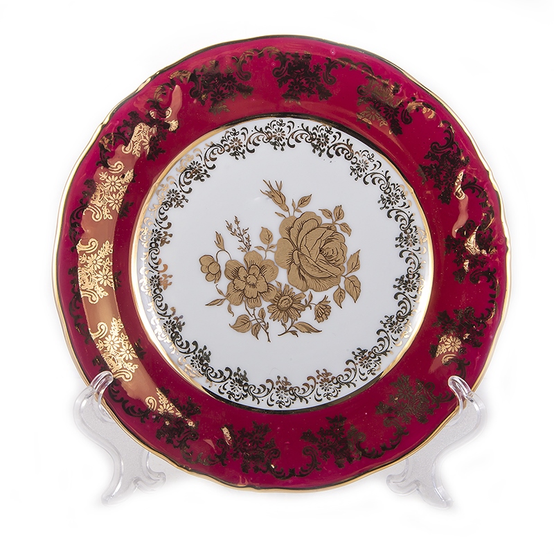 Набор тарелок 19см.6шт.роза красная. Количество персон: на 6 персон Страна: Чехия Бренд: Carlsbad Коллекция: Роза красная Материал: Фарфор Цвет: Кобальт красный