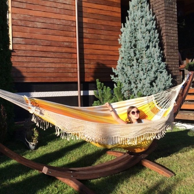 Гамак двухместный lite sun flower для хобби и пикника. Яркая красивая ткань гамака двухместного Lite Sun Flower Lite радует глаз своей необычной расцветкой. Для садовой мебели специально использована ткань ручной работы, которая не nbsp выгорает на nbsp солнце и nbsp не nbsp боится воздействия сырой погоды. Лаунж зона дополнится прекрасным местом для отдыха. Гамак очень прочный, легко собирается и nbsp переносится в nbsp другое место. Украшен интересным элементом nbsp — длинной бахромой вдоль всего полотна. Размер, см 240x165 Страна производства Бразилия Максимальная нагрузка, кг 180 Вес, кг 2