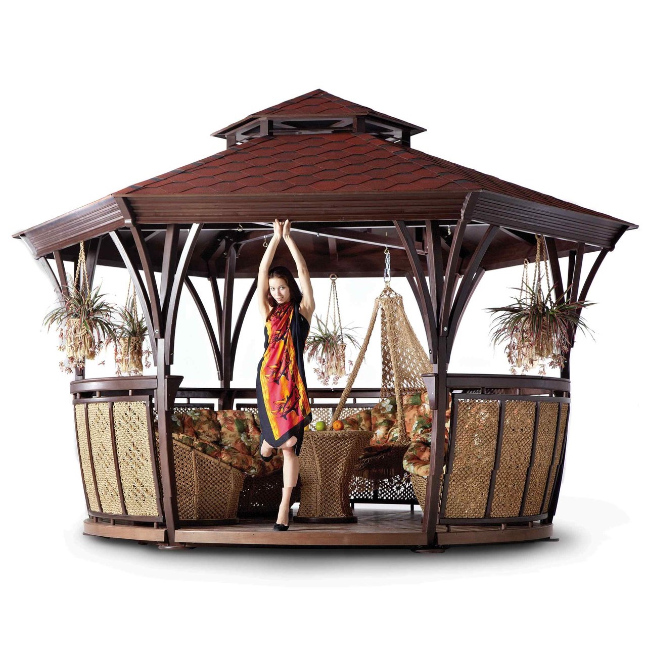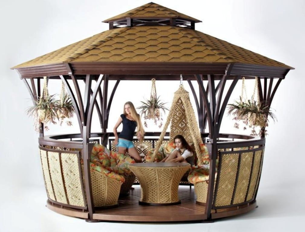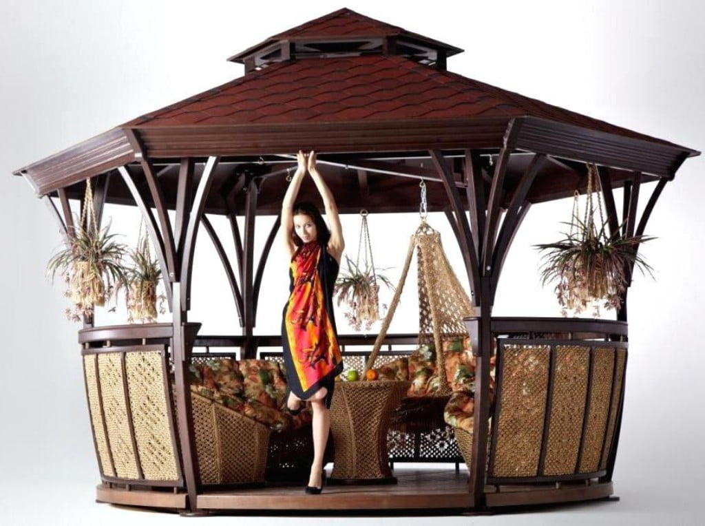 Беседка грация xl (сизаль), уличное оборудование.     Интересный дизайн   Беседка Грация XL (сизаль) Leda способна сразу же привлечь к себе все внимание окружающих благодаря интересному дизайну. Несмотря на оригинальный внешний вид, данная конструкция будет отличным арт-объектом для вашего дачного участка. Здесь можно отлично отдыхать и самому, и со своими близкими.   Отличное качество   Беседка сделана из хвойной древесины высокого качества. Этот материал прошел дополнительную обработку специальными пропитками. Они не только значительно увеличивают срок годности древесины, но еще и обеспечивают надежную защиту материала от вредного воздействия окружающей среды, а также насекомых.   Надежная защита   Беседка Грация XL (сизаль) Leda оборудована прочной кровлей из маркизной ткани. Она дополнительно покрыта водоотталкивающей пропиткой. Благодаря этому внутри конструкции вы будете отлично защищены не только от атмосферных осадков, но и от ультрафиолетового излучения. Даже в сильную жару внутри приятная прохлада.   Дополнительные возможности   Внутри беседки можно не только воспользоваться мебелью и столом, но и подвесить плетеный гамак. Благодаря особенности конструкции беседки сделать это можно в любой удобной точке. Решетка, из которой изготовлена данная беседка, отличается антистатическими свойствами, высокой прочностью и долгим сроком службы.   Артикул производителя 2063