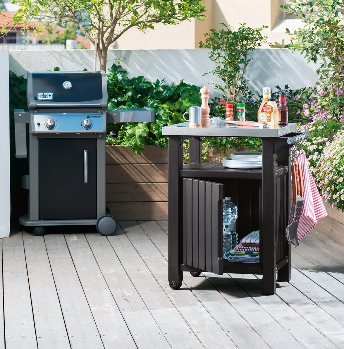 Столик для барбекю keter storage unit 118, садовая мебель. Функциональное и оригинальное решение в прекрасном стиле, такое как стол для гриля Keter Storage Unit 118 Л, украсит любой сад или террасу. Основным преимуществом продукта является его мультифункциональность. Необычная конструкция позволяет использовать его, как стол для приготовления блюд, и как шкафчик для хранения различных продуктов и ингредиентов. Entertainment Storage оснащен столешницей из нержавеющей стали, удобной ручкой с дополнительными вешалками и колесиками, благодаря которым продукт удобно перемещать в разные места. Во вместительный шкафчик можно положить подручные аксессуары, необходимые для приготовления и подачи блюд на свежем воздухе. Простой монтаж. Особенности: Вместительность: 118 л Размер, см 70х54х90 Материал изделия Ударостойкий полипропилен Страна бренда Израиль Страна производства Израиль Вес, кг 11,5