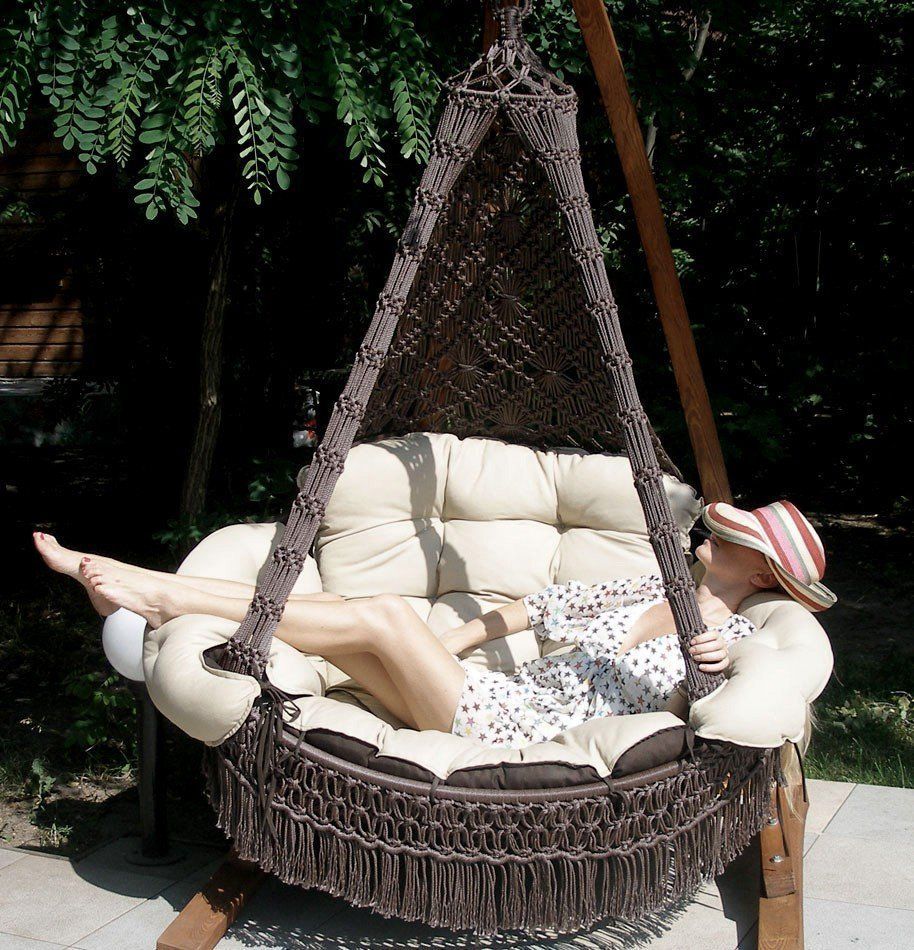 Модная новинка – подвесной гамак-кресло CARTAGENA с невероятно мягкими и комфортными подушками – сплетен вручную из полиамидной нити. Кресло украшено эффектной бахромой и станет стильным акцентом в любом помещении и ландшафте. nbsp