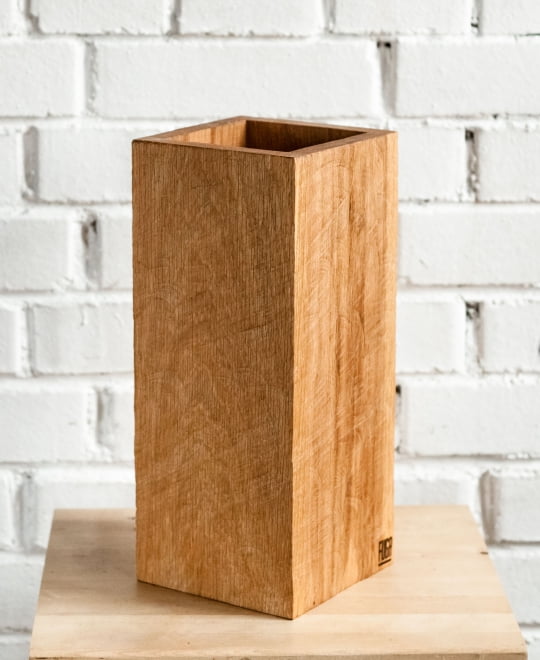 Ваза декоративная fuga снег средняя цвет: светлый, товары для загородного . Материал Массив дуба Размеры, мм 150 х 150 х 350 Покрытие Льняное масло
