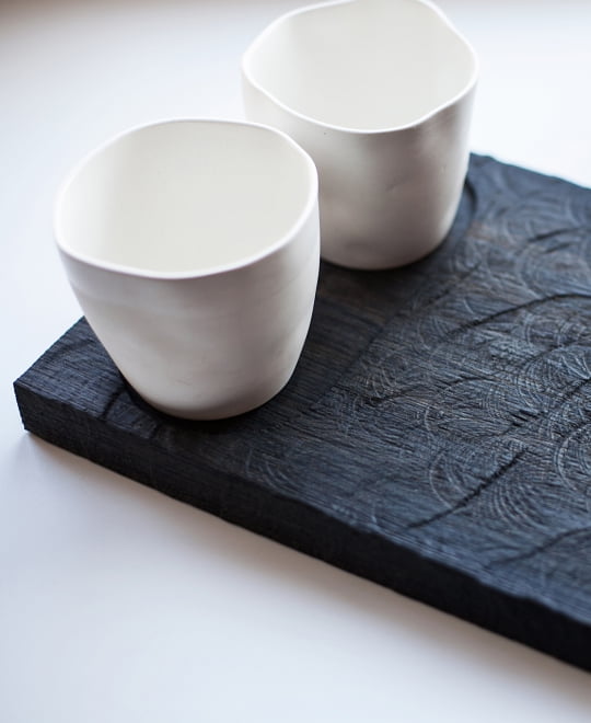 Поднос fuga снег под две чаши цвет: темный, товары для загородного дома. Материал Мореный дуб Размеры, мм 260 х 180 х 30 Покрытие Льняное масло
