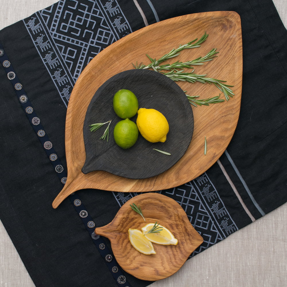 Набор Fuga листья два блюдца и тарелка цвет: светлый + тёмный, товары для