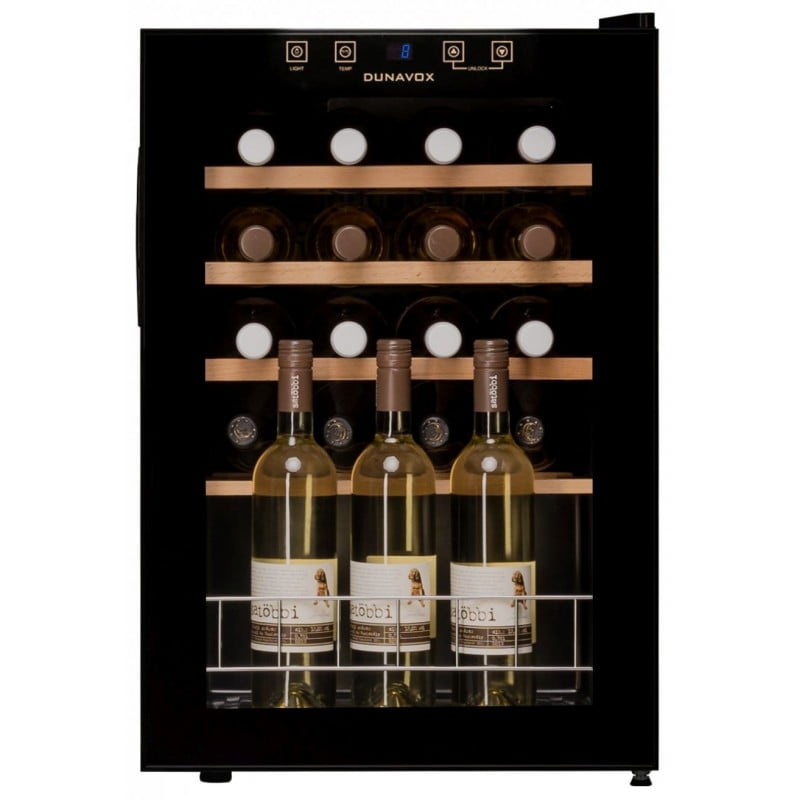 Винный шкаф dunavox home dx-20.62k, товары для загородного дома. Винные шкафы серии HOME служат для правильного хранения и демонстрации коллекции вин. Подходят как для дома, так и для небольших ресторанов. Винный холодильник DX-20. 62K выполнен в элегантном черном корпусе. Модель укомплектована четырьмя полками из натурального дерева и одной металлической демонстрационной решеткой для вертикальной установки бутылок. Шкаф имеет одну зону охлаждения. В верхней части есть сенсорная панель, с помощью которой пользователь выбирает необходимый температурный режим работы аппарата. На ней расположены сенсорные кнопки для регулировки температуры и включения освещения. Данные термостата демонстрирует цифровой экран с подсветкой. Дверца шкафа с тонированным стеклом c защитой от ультрафиолетовых лучей и встроенной ручкой, открывается на 100 градусов. Вместительный и компактный винный шкаф Dunavox DX-16. 46K – идеальный выбор для рабочего кабинета или дома. Винный шкаф может использоваться как отдельностоящий, так и встроенный, с соблюдением необходимых для охлаждения зазоров 1-5 см, т. к. охлаждение винного шкафа осуществляется через нагрев боковых стенок. А также под винным шкафом желательно сделать воздухозаборную решетку с выводом воздуха за винный шкаф. Это позволит охладить компрессор. При открытии двери она выходит за корпус шкафа на 1,5 см. Тип охлаждения Компрессорный Тип установки Отдельностоящий Размеры шкафа, см 650х430х480 Количество зон Одна Объем, Л 62