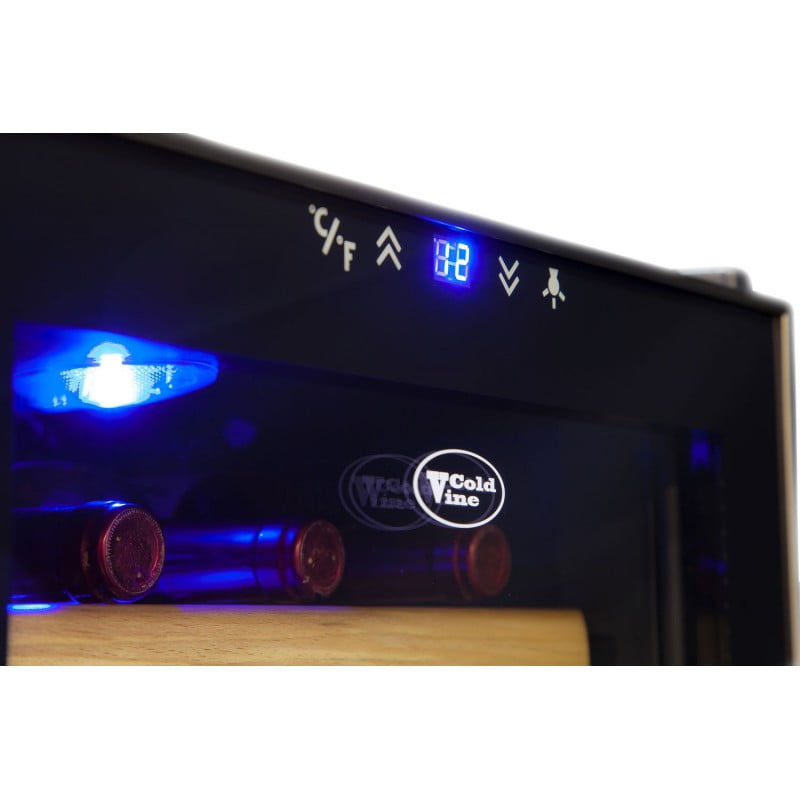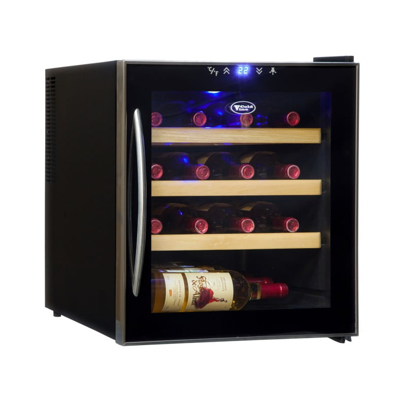 Винный шкаф cold vine c16-tbf1, товары для загородного дома. Представляем Вам новинку от бренда Cold Vine. Удобный, компактный, недорогой и вместительный винный шкаф на 16 бутылок C16-TBF1. Бутылки типа Бордо размещаются на трёх полках и на нижней стенке шкафа. А также на полках легко помещаются бутылки шампанского. При необходимости можно вытащить одну из полок,и расположить более объемные бутылки. Корпус винного шкафа выполнен из стали, окрашенной в чёрный цвет. По периметру стеклянной двери идёт тонкая окантовка стального цвета, придающая шкафу индивидуальный стиль и элегантность. Панель управления винного шкафа находится на дверце, что очень удобно при установке желаемой температуры в шкафе, и даёт возможность включить мягкую светодиодную подсветку голубого цвета для демонстрации коллекции. Винный шкаф открывается с помощью удобной стальной ручки на двери. В винном шкафу C16-TBF1 можно установить температуру в диапазоне от +10 до +18 ?С, что позволяет хранить в шкафу любой из типов вина. Вместимость винного холодильника составляет 16 бутылок типа Бордо емкостью 0,75 л. Не стоит забывать, что термоэлектрические шкафы не любят тепла и замкнутых пространств, поэтому рекомендуем устанавливать их в прохладном месте, вдали от солнечных лучей и других источников тепла, не закрывая при этом вентиляционных отверстий на корпусе шкафа. Тип охлаждения Термоэлектрический Тип установки Отдельностоящий Размеры шкафа, см 500x430x510 Количество зон Одна Объем, Л 46