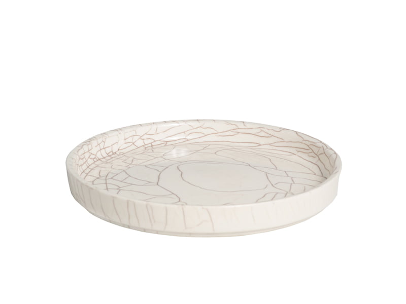 В коллекции «Спайдер» от Дымов Керамика представлены несколько видов тарелок, а также салатники, пиалы, чайные и кофейные пары, стаканы, сковородки, соусники и другие виды посуды. Эта серия выполнена в мягком кремовом цвете с асимметричными вкраплениями «паутинки» темного цвета.