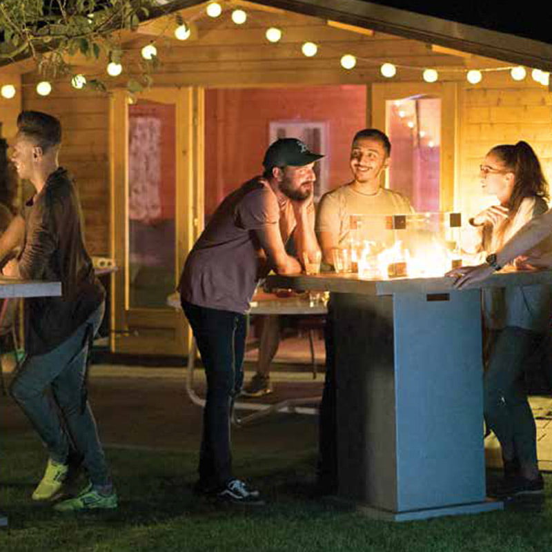 Уличный газовый стол камин clifton table gray, уличное оборудование. Высокая версия столов-каминов Clifton. Может быть использован в качестве барного стола с живым пламенем в центре. Этот стол камин отлично обогревает гостей и привлекает внимание. Подходит для частных вечеринок и баров. Clifton Table изготовлен из прочных композитных материалов, имитирующих натуральные поверхности. Широкая столешница позволяет разместить бокалы и тарелки вокруг пламени. Стол камин не боится влаги и перепадов температур, он создан для уличного использования. Композитный баллон устанавливается внутрь стойки, как и у уличных газовых обогревателей. Электроподжиг позволяет быстро запустить костер. Эта версия стола поставляется с защитным экраном из толстого закаленного стекла и лавовым камнем в качестве наполнителя очага. Длина, см 88 Ширина, см 88 Высота, см 106 Мощность, кВт 9 Размещение газового балона Внутри стола
