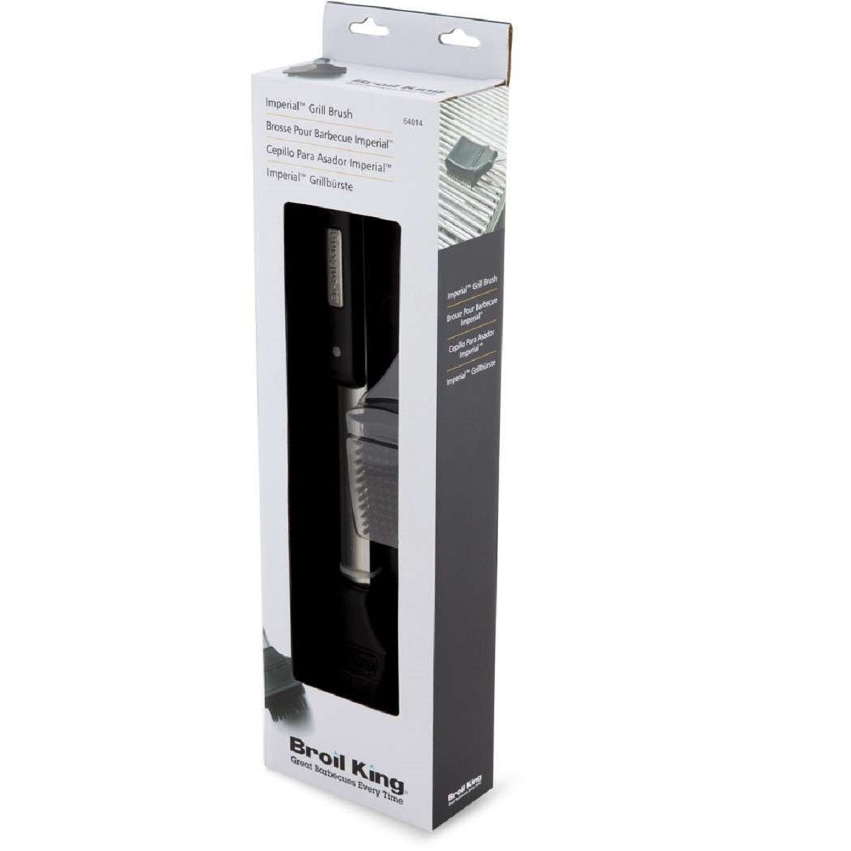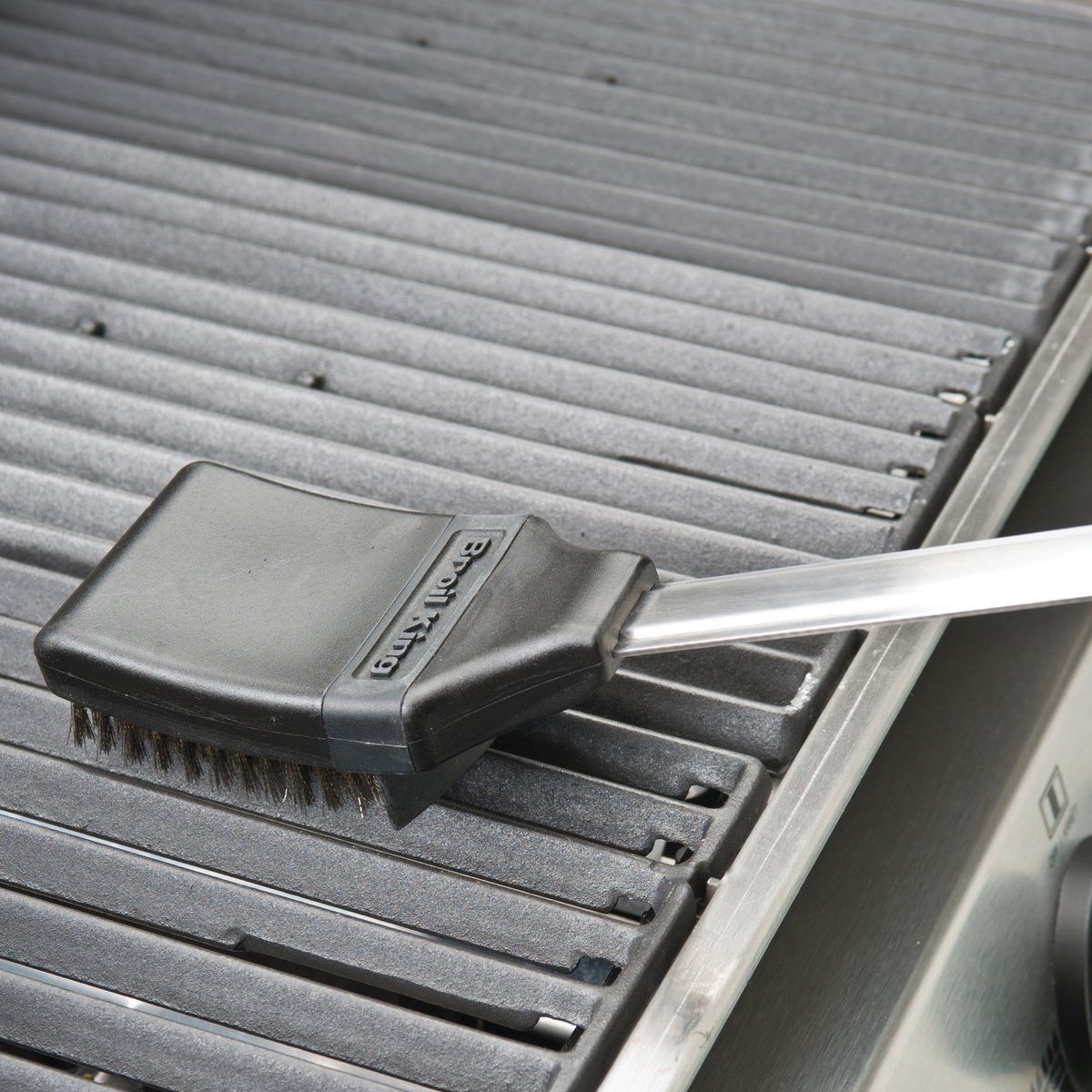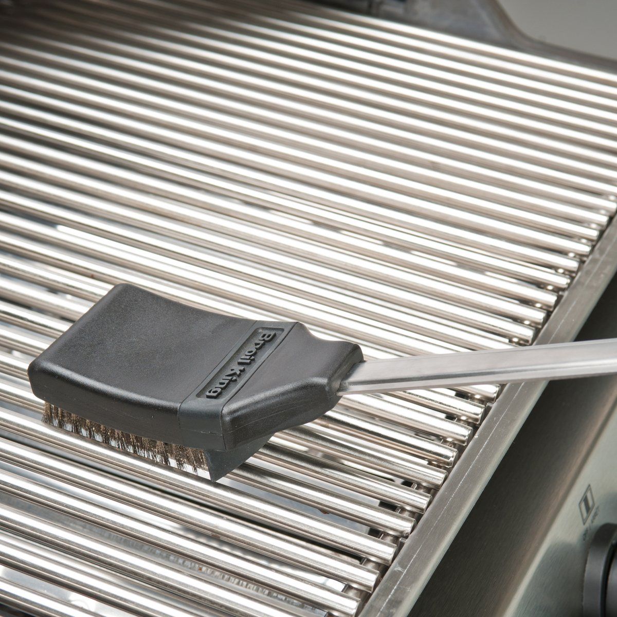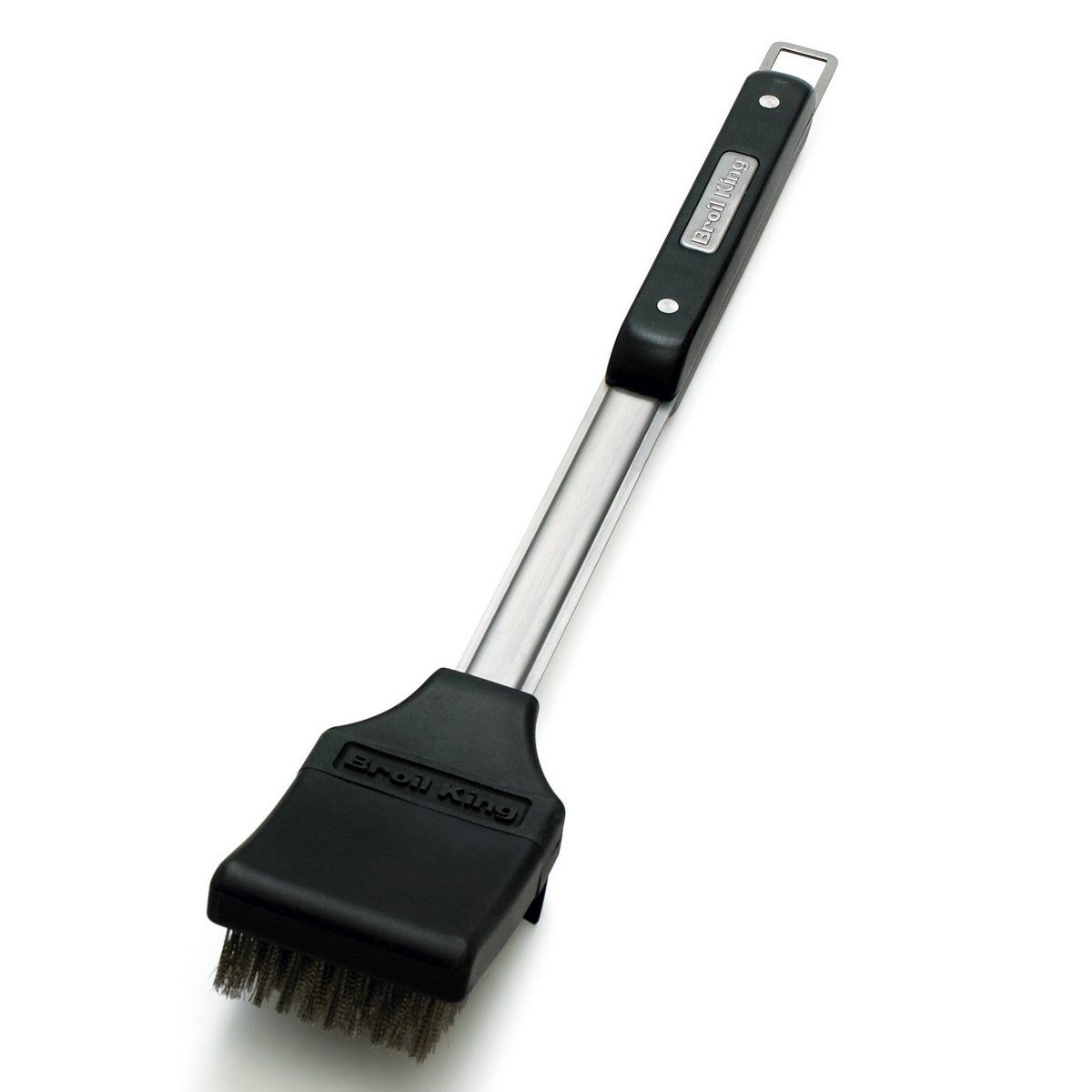 Щетка для гриля Broil King® Imperial™ из нержавеющей стали имеет удобную изогнутую головку, повторяющую движения кисти. Запатентованная система «защиты от грязи» не пропускает грязь во время чистки решеток. Также щетка имеет встроенный крючок и удобную полимерную ручку с логотипом Broil King® на вставке из нержавеющей стали.