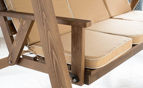 Качели semka floresta (лиственница), садовая мебель. Модель садовых качелей SEMKA Floresta из лиственницы - эта древесина намного прочнее и долговечнее сосны, поэтому при правильном уходе эта модель может радовать хозяев долгие годы. Древесина заготавливается в Сибири в зимнее время, что исключает “иссыхание” материала и его растрескивание. Качели окрашены специальными маслами высшего качества для защиты от влаги. Благородный и натуральный цвет “cappuccino” для любителей классики. Они прекрасно впишутся почти в любой ландшафт. Точная подгонка всех деталей и фурнитура от немецкого производителя. Цвет тента, подушек и каркаса может быть изготовлен по вашему желанию в различных цветах. Все деревянные элементы тщательно обработаны специальными составами от иссыхания и влаги, а так же покрыты матовым лаком. Комплект подушек в комплект не входит! Подушка для деревянных качелей Semka Floresta - 2100. 00 руб. / 1 шт. Размер, мм 1950 Х 1300 Х 1560 Д*Ш*В Вместимость 3 человека Размер сидения, мм 435 (высота) Допустимая нагрузка, кг 250 Подстаканники Нет