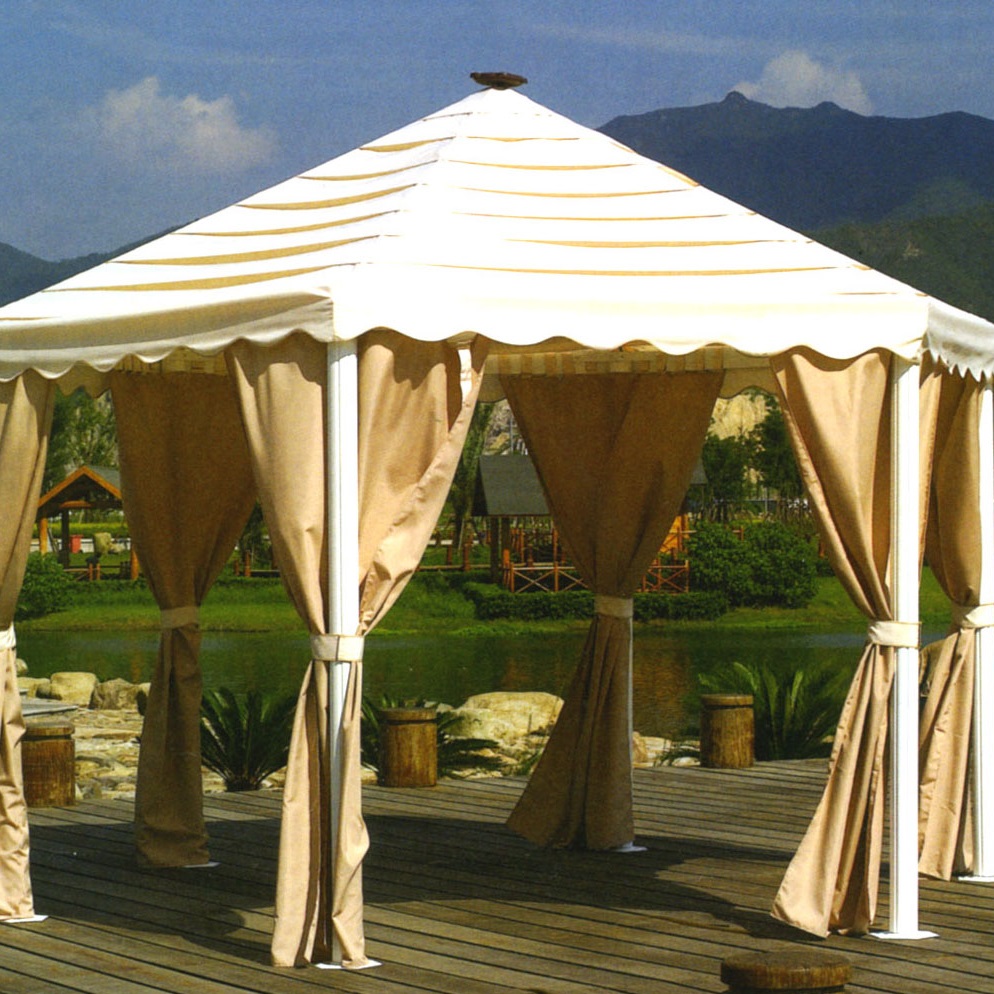 Шатер lite 103, уличное оборудование. Комплектация Стойка Диаметр несущих стоек 8см Материал Алюминий Аксессуары Комплект ДЕКОРАТИВНЫХ боковых стенок, москитных сеток нет. Цвет металла Черный Крыша и стенки Цвет Светлобежевый. Плотность ткани Полиэстер 210г/кв. м, водонепроницаемые крыша и стенки. Размеры Площадь 10,5 кв. м Высота 3 м Вес 42 кг Размер, см 200 - 6 стенок Материал каркаса Углеродистая сталь Материал изделия Полиэстер высокого давления Вес, кг 42 Цвет Бежевый