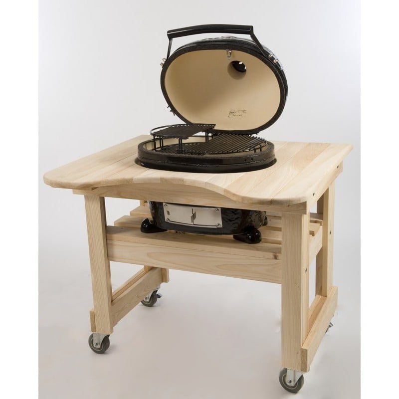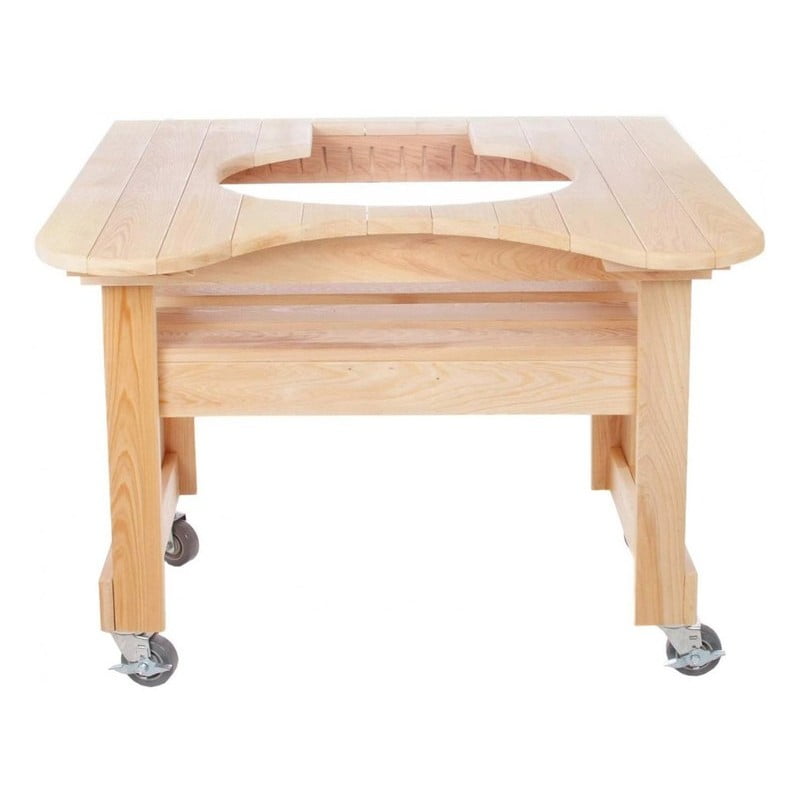 Стол из лиственницы для junior для сада. Деревянный стол из дерева лиственницы, великолепно впишется в ландшафтный дизайн Вашего участка. Стол ручной работы, имеет стильный дизайн, благодаря колесикам, мобилен и легко перемещается по территории. Конструкция стола простая и в тоже время функциональная, нижнюю полку можно использовать для хранения различных акксессуаров. Модификации для Primo Oval Junior. Керамические ножки входят в комплект. Вид Отсекатели жара Артикул производителя 640-Л