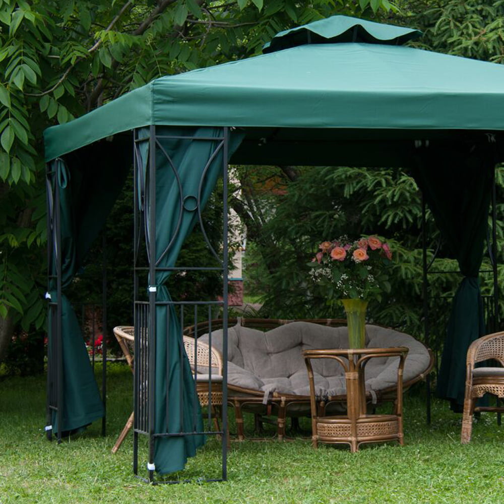Беседка тент-шатер slg032, уличное оборудование. Просто и стильно Беседка тент-шатер SLG032 Garden Way станет уютным и комфортным местом для отдыха как на природе, так и на дворе загородного дома. Интересный дизайн модели не помеха практичности, при этом сам павильон хорошо гармонирует с любым окружением – будь то пляж, терраса кафе, двор или же просто поляна на природе. Мобильность Беседка легко устанавливается на месте, не требует много времени на сборку и разборку, вообще не нуждается в обслуживании, а также отличается небольшой массой и легкостью транспортировки. Эти качества позволяют использовать шатер для любых целей, не затрачивая на это много сил – практично, стильно и недорого. Хорошая защита Беседка тент-шатер SLG032 Garden Way отлично защищает находящихся внутри людей от любой непогоды, в том числе сильных дождей и порывов ветра. Также есть защита от жесткого ультрафиолетового излучения в жаркую погоду. Чтобы не терпеть нападки насекомых, можно установить по периметру надежную москитную сетку. Долговечность Шатер изготовлен из полиэстера и алюминия – эти материалы отличаются не только высокой прочностью, но и длительным сроком эксплуатации. На практике он достигает нескольких десятков лет, если обращаться с этой конструкцией аккуратно. Таким образом, покупка данной беседки – выгодное и долгосрочное вложение. Артикул производителя SLG032