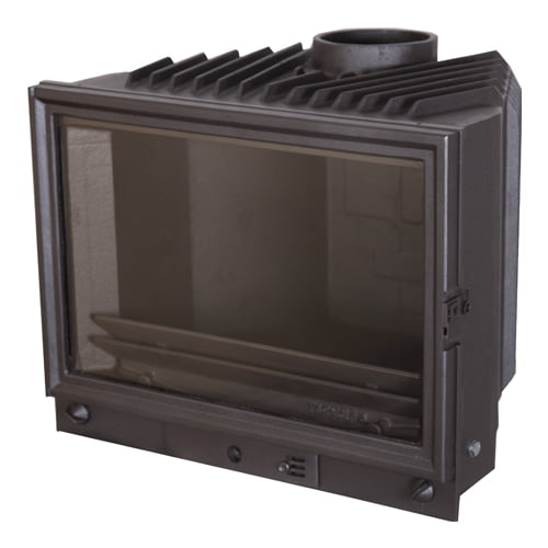 это монолитная отопительная топка. Внешний вид топки подходит как к интерьеру в современном стиле, так и к рустикальной застройке. Монолитная каминная топка изготовлена из серого чугуна высшего качества, способом литья в песочные формы. Толщина стенок корпуса от 8 mm до 22 mm. Корпус (камера сгорания) представляет собой цельную форму - монолит, дверка топки и витрина зольника подогнаны к корпусу способом шлифовки, что позволяет добиться абсолютной плотности без использования уплотнительного шнура. Вертикальные боковые каналы, по которым воздух проходит в камеру сгорания, в корпусе закрыты со стороны стекла дверки, благодаря чему воздух поступает сверху создавая вихревой поток и, обходя стекло, оставляет его чистым. Это позволяет получать эффективную теплоотдачу в помещении, в котором смонтирована каминная топка, а так же позволяет восхищаться красотой горения дров. Стекло вмонтированное в дверки является жаростойким и выдерживает температуру 800 градусов С. Плотное и сильное закрытие дверки при помощи ригеля или пружинного самозатягивающегося ригельного замка, гарантирует стабильное и безопасное закрытие камеры сгорания. Мощная конструкция и большое количество вертикальных рёбер, придаёт каминной топке стабильность. Наружные и внутренние вертикальные рёбра создают большую поверхность теплообмена. Два регулятора, находящихся с правой и левой сторон, внизу фронтальной стороны топки, предназначены для регулирования подачи воздуха в камеру сгорания (полное вторичное сгорание. Внутри корпуса, в нижней части топки, расположены колосники с отверстиями, под которыми находится зольный ящик. В верхней части камеры сгорания находится профилированный дефлектор (заслонка), который выполняет функцию перегородки, между нижней и верхней частью камеры сгорания. Под дефлектором собираются газы, выделяющиеся при сгорании древесины и наступает эффект догарания древесных газов. Топливо для топки - древесина лимственных пород. Длина полена 400 mm. Гарантия 10 лет. Производитель Польша.