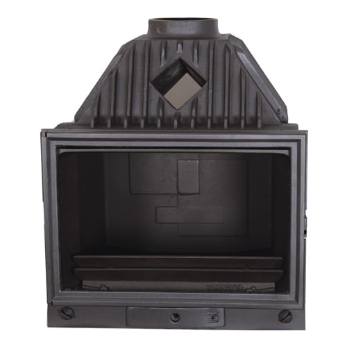 это монолитная отопительная топка. Внешний вид топки подходит как к интерьеру в современном стиле, так и к рустикальной застройке. Монолитная каминная топка изготовлена из серого чугуна высшего качества, способом литья в песочные формы. Толщина стенок корпуса от 8 mm до 22 mm. Корпус (камера сгорания) представляет собой цельную форму - монолит, дверка топки и витрина зольника подогнаны к корпусу способом шлифовки, что позволяет добиться абсолютной плотности без использования уплотнительного шнура. Вертикальные боковые каналы, по которым воздух проходит в камеру сгорания, в корпусе закрыты со стороны стекла дверки, благодаря чему воздух поступает сверху создавая вихревой поток и, обходя стекло, оставляет его чистым. Это позволяет получать эффективную теплоотдачу в помещении, в котором смонтирована каминная топка, а так же позволяет восхищаться красотой горения дров. Стекло вмонтированное в дверки является жаростойким и выдерживает температуру 800 градусов С. Плотное и сильное закрытие дверки при помощи ригеля или пружинного самозатягивающегося ригельного замка, гарантирует стабильное и безопасное закрытие камеры сгорания. Мощная конструкция и большое количество вертикальных рёбер, придаёт каминной топке стабильность. Наружные и внутренние вертикальные рёбра создают большую поверхность теплообмена. Два регулятора, находящихся с правой и левой сторон, внизу фронтальной стороны топки, предназначены для регулирования подачи воздуха в камеру сгорания (полное вторичное сгорание. Внутри корпуса, в нижней части топки, расположены колосники с отверстиями, под которыми находится зольный ящик. В верхней части камеры сгорания находится профилированный дефлектор (заслонка), который выполняет функцию перегородки, между нижней и верхней частью камеры сгорания. Под дефлектором собираются газы, выделяющиеся при сгорании древесины и наступает эффект догарания древесных газов. Топливо для топки - древесина лимственных пород. Длина полена 400 mm. Гарантия 10 лет. Производитель Польша.