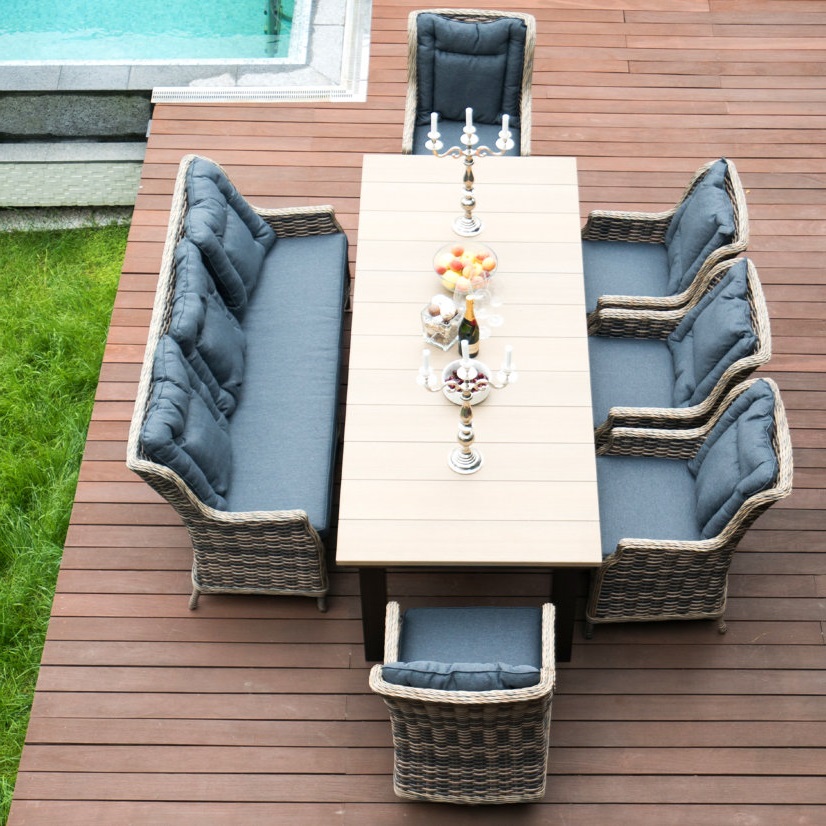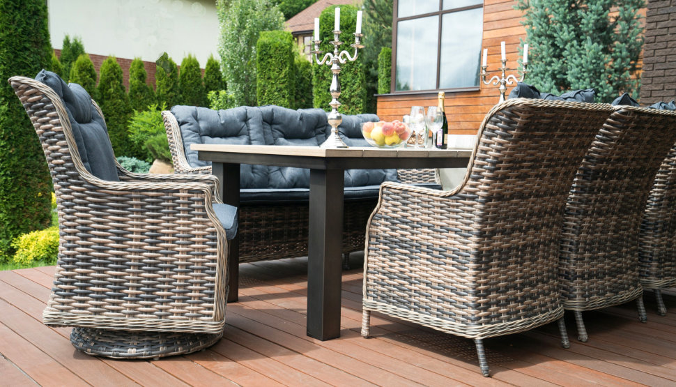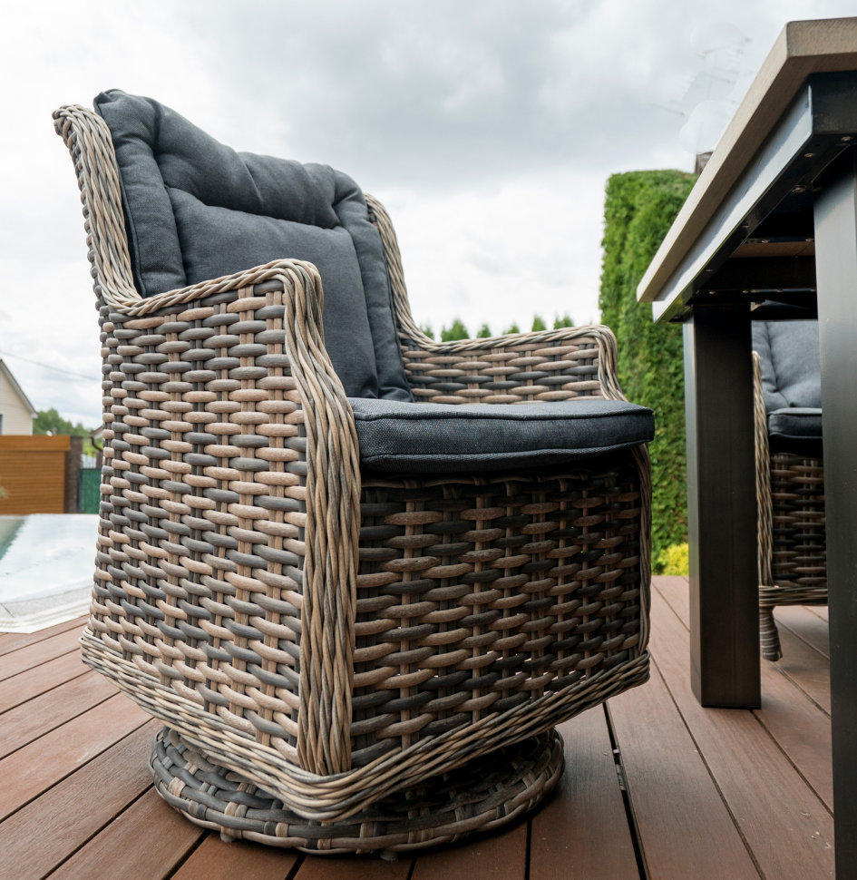 Обеденная группа lite malta, садовая мебель. Обеденная группа Maita позволит разместиться за трапезой даже самой большой компании! Большой вместительный стол с ударопрочной столешницей из древесно-полимерного материала и 8 комфортных посадочных мест - это то что нужно для посиделок на свежем воздухе. Комплектация включает в себя 3-х местный диван, 3 кресла , 2 кресла на вращающейся опоре, стол. Диван, см 187 X 51 X 95 Кресло, см 110 X 53 X 52 Стул, см 95 X 51 X 54 Обеденный стол, см 240 X 100 X 77 Материал каркаса Всепогодный алюминий