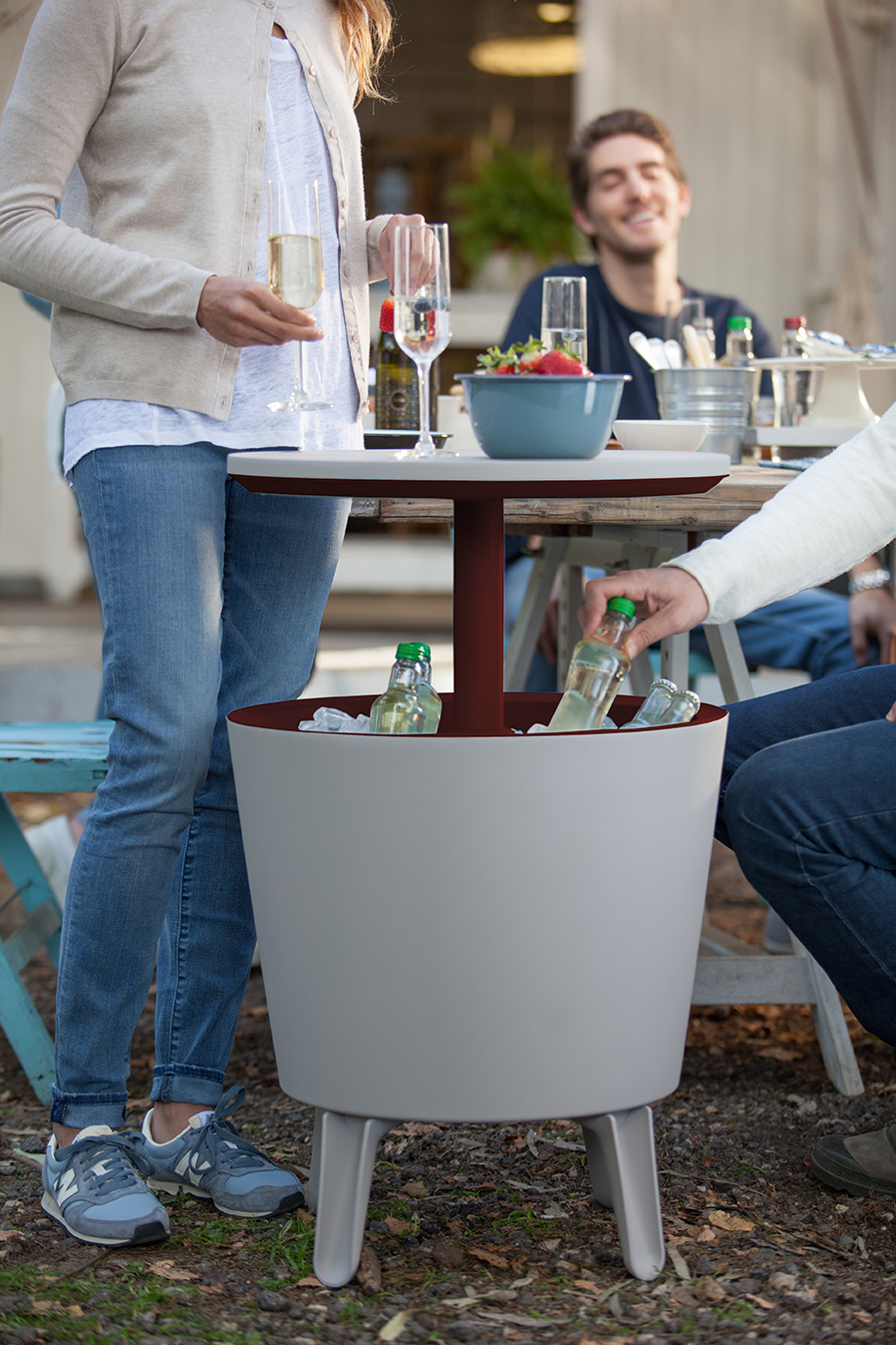 Столик-холодильник keter cool bar крем-шоколад, садовая мебель. Столик имеет современный дизайн, и с закрытой крышкой, в столике есть емкость для хранения, в которую можно поместить специальный пакетик с сухим льдом, который будет поддерживать отрицательную температуру в емкости и,соответственно, станет незаменимым помощником в жару. Размер, см 49,5 Х 49,5 Х 57-84,5 Материал изделия Полипропилен Страна производства Израиль Вес, кг 7 Цвет Крем-шоколад