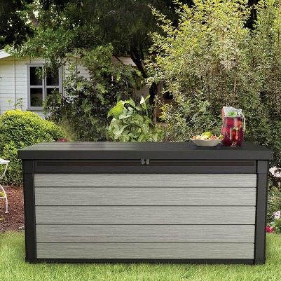 Пластиковый садовый сундук keter denali duotech deck 570, садовая мебель. Новинка 2018 года - уличный сундук Денали с технологией Дуотек. Пластик имитирует текстуру дерева и может быть окрашен в любой цвет. Компактный и стильный уличный сундук Denali станет отличным функциональным и стильным решением для вашего участка. Особенности: Поршневый механизм для фиксации крышки. Возможность для запирания на замок Легкая сборка благодаря новым панелям ДУОТЭК Идеально для хранения, в помещении или вне его Вместительность: 570 л Размер, см 152 Х 72 Х 70 Материал изделия Ударостойкий полипропилен Страна бренда Израиль Страна производства Израиль Вес, кг 14