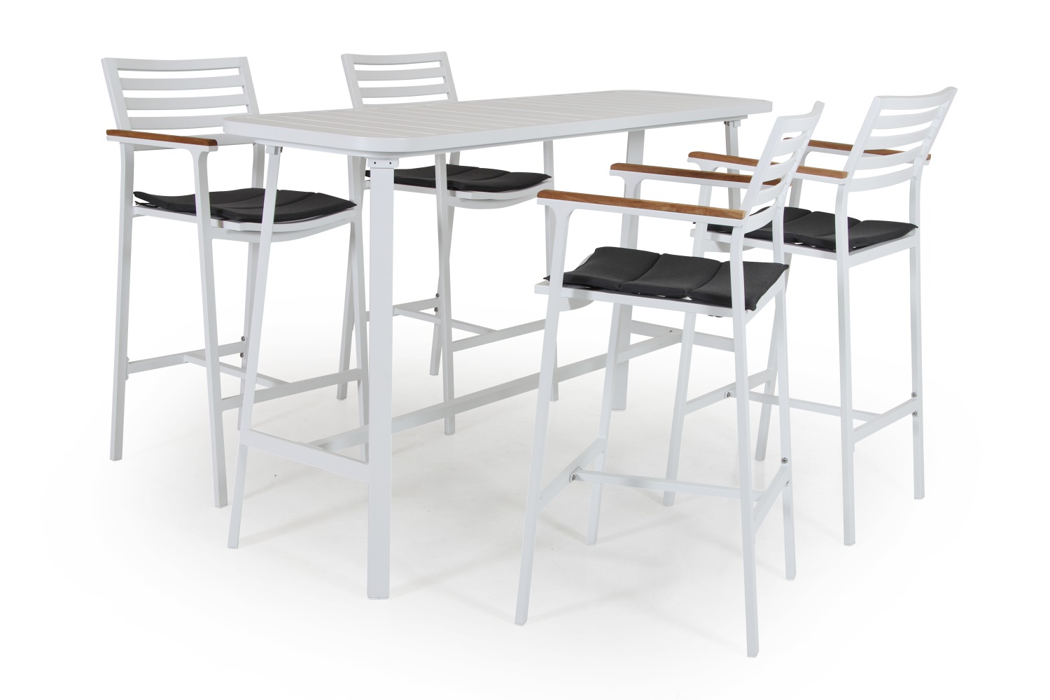 Стол барный brafab olivet, садовая мебель. Olivet - это серия, вдохновленная 60-ми годами. Матовое покрытие белого цвета с деталями из тикового дерева и комфорт высокого качества благодаря изогнутым выступам и контурным олефиновым подушкам. Выберите между 3-местным или 2-местным диваном, креслом и журнальным столиком в трех размерах, все с журнальной стойкой. Размер, см 176 X 56. 5 X 105. 5 Чайный столик, см Материал каркаса Всепогодный алюминий Страна бренда Швеция Цвет Белый